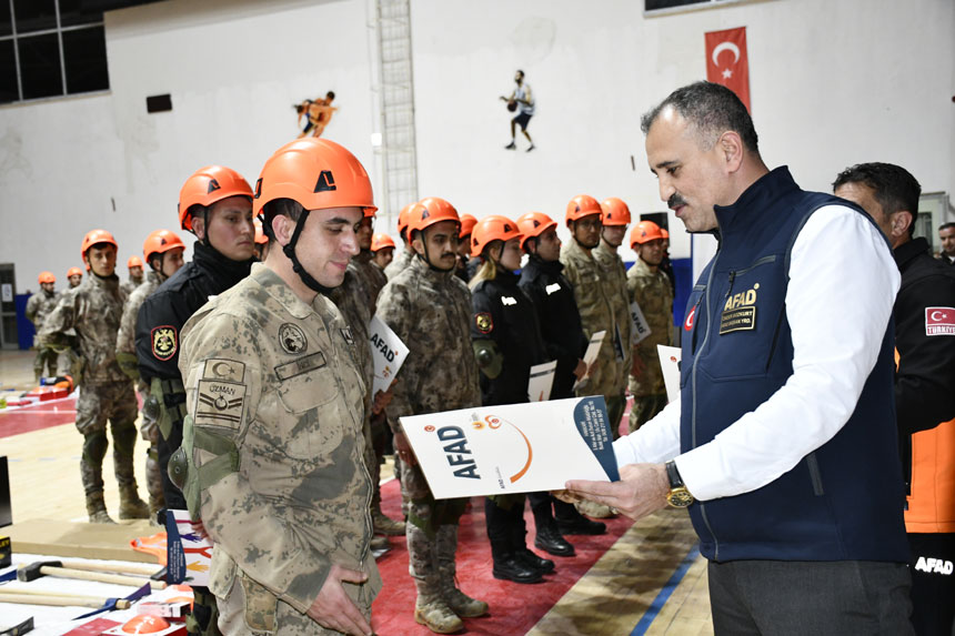 Hakkari’de 56 ekip ve bin 800 arama kurtarma personelinin eğitimlerini tamamladığını ifade eden Bozkurt, kentte kurulan eğitim merkezinin eğitimleri sürdürülebilir biçimde devam ettireceğini vurgulayarak, “Bu salonda bulunan personelimiz; emniyetimiz, jandarmamız, Mehmetçiklerimiz, MEB personeli ve STK temsilcilerinden oluşmaktadır. Tamamıyla son teknoloji ekipmanlar her an afete hazır durumda,” diye konuştu.