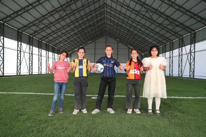Halı sahaya kavuşmanın mutluluğunu yaşayan Yıldız ve diğer çocuklar, yapımı tamamlanan sahada futbol oynamaya başladı, öğretmenleri eşliğinde antrenman yaptı.