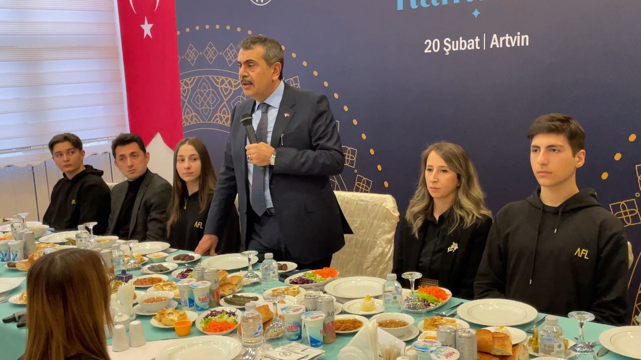 İlk üç içerisindeyiz Avrupa ülkeleri arasında. Bunlar önemli şeyler, pedagojik anlamda önemli göstergeler, akademik başarılarımız anlamında. Türkiye'de sağlıkta, savunma sanayinde devasa adımlar atılıyorsa eğer, Milli Eğitim Bakanlığı bünyesinde öğretmen arkadaşlarımızın size kazandırdıkları bu akademik beceri ve millet olmanın şuurunu size vermeleriyle sağlanıyor. İşte bu anlamda bugün Ramazan ayı vesilesiyle Türkiye'de bütün okullarımızda bizi bir arada tutan milli birliğimizin, beraberliğimizin toplumda yardımlaşma, dayanışma şuurumuzu artıran en önemli dönemlerden bir tanesi olan Ramazan ayında biz okullarımızda bu bilinçle, bu şuurla yetişecek çocukların farkındalık oluşturabileceklerini bir dönem olsun istedik. Bu kapsamda da başlattığımız etkinliklerden bir tanesi 'İftarda Konuşalım' etkinliğiydi" diye konuştu.