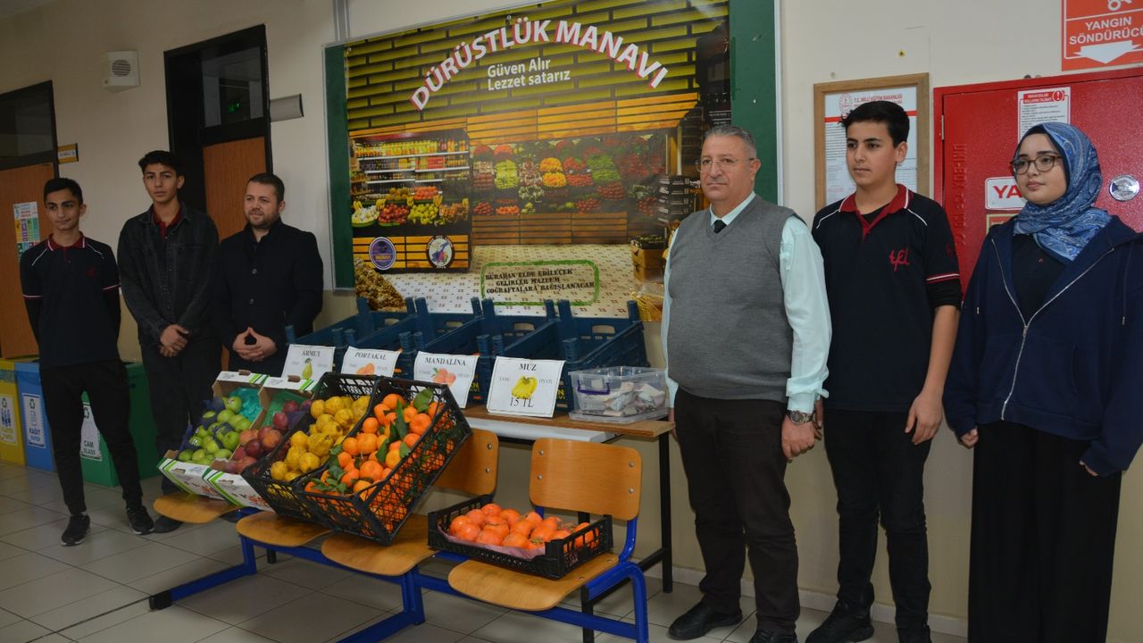 Bu kapsamda, okulun koridorunda "dürüstlük manavı" kuruldu.