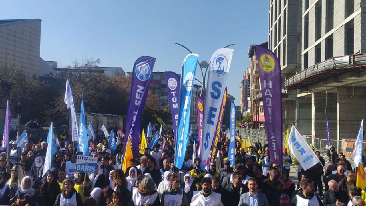 Mitinge; KESK Eş Genel Başkanı Ahmet Karagöz, DEM Parti Mardin Milletvekili Beritan Güneş Altın, DEM Parti Van Milletvekili Zülküf Uçar, çok sayıda belediye eşbaşkanı ile birlikte Hakkari’den gelen kamu emekçileri de KESK öncülüğünde kortej oluşturarak alana giriş yaptı.