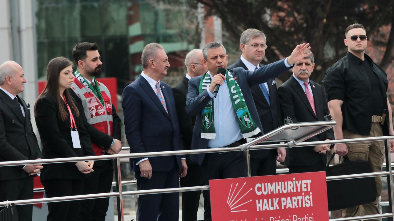 Cumhuriyet Halk Partisi Genel Başkanı Özgür Özel, Kocaeli’nin İzmit ilçesindeki açık bir otoparkta gerçekleştirilen ‘Millet İdaresi’ne Sahip Çıkıyor’ mitingine katıldı. Mitingde Özel’in yanı sıra; CHP milletvekilleri, ilçe belediye başkanları ve partililer yer aldı.