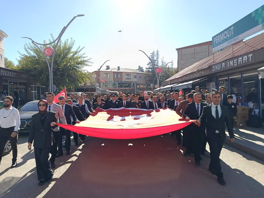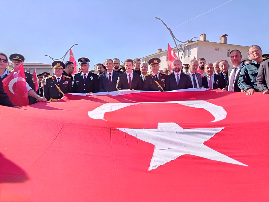 Cumhuriyet Meydanı'nda Atatürk Anıtı'na çelenklerin sunulmasıyla başlayan törende saygı duruşunda bulunuldu ve İstiklal Marşı okundu.