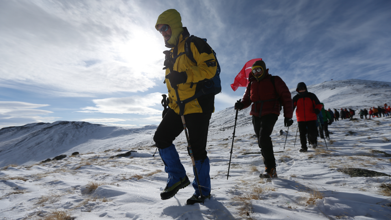 Anma programları kapsamında Türkiye'nin farklı kentlerinden Kars'a gelen dağcılar, şehitlerin şehadete yürüdüğü Allahuekber Dağları'nın zirvesine çetin kış koşullarında tırmanarak, ecdadın o dönem yaşadığı zorlukları hissediyor.