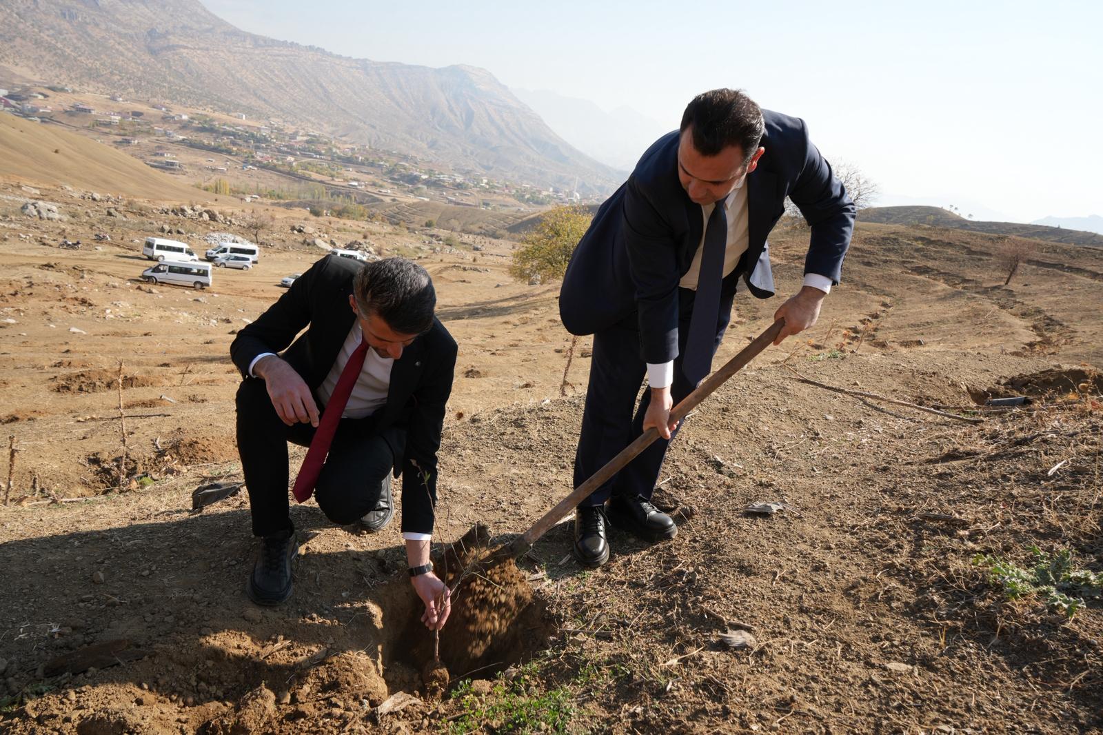 DERECİK- İlçenin simgesi haline gelen Balkayalar (Govend) Dağı eteklerinde düzenlenen program kapsamında 500 adet fidan toprakla buluşturuldu.