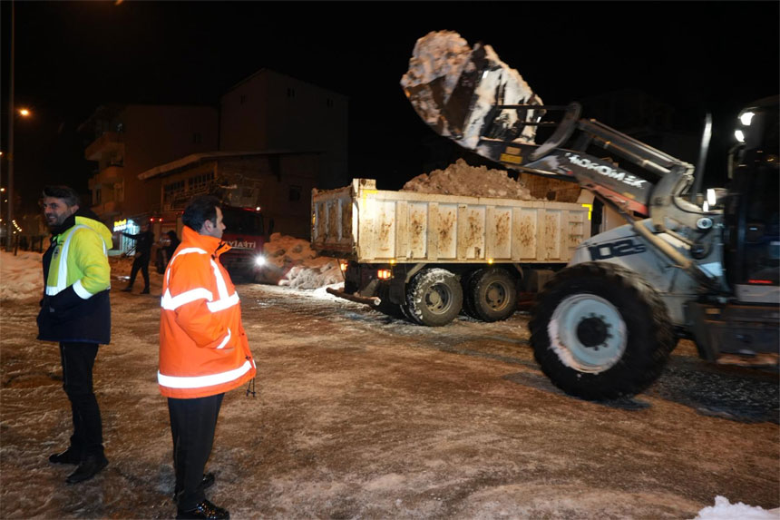Açıklamada, gece saat 02.00’ye kadar devam eden çalışmalar kapsamında ilçe merkezinde başta Cumhuriyet Caddesi olmak üzere tüm cadde ve sokakların kardan temizlendiği belirtildi. Hava sıcaklığının eksi 5 dereceye kadar düştüğü zorlu koşullara rağmen ekiplerin özverili bir şekilde görev yaptığı ifade edildi.