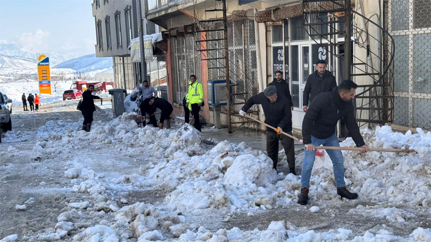 DERECİK- Belediye basın biriminden yapılan açıklamaya göre, son yılların en yoğun kar yağışının yaşandığı, Irak sınırındaki Derecik ilçesinde belediye ekipleri gece ve gündüz sahada görev yaptı.