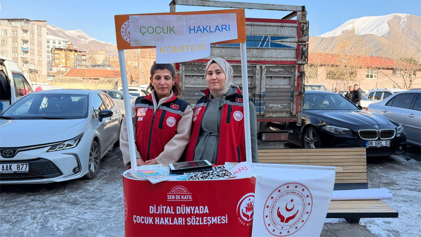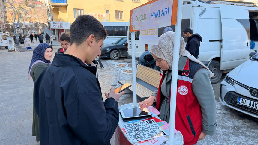HAKKARİ – Hakkari Aile ve Sosyal Hizmetler İl Müdürlüğü, Aile ve Sosyal Hizmetler Bakanlığı tarafından hazırlanan "Dijital Dünyada Çocuk Hakları Sözleşmesi'nin kamuoyuna duyurulması ve farkındalık oluşturulması amacıyla kent merkezinde bilgilendirme çalışması gerçekleştirdi.
