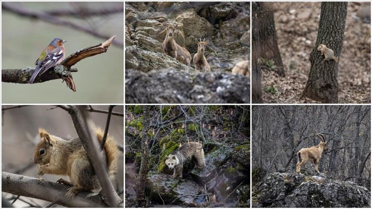 Güvenli buldukları noktaları mesken tutan yaban keçileri ve kış uykusundan uyanan bozayılar, meşe ormanlarıyla kaplı dağlarda yiyecek ararken görüntülendi. İspinoz, dağ kuyruksallayanı ve küçük cıvgın kuşları da milli parkta kondukları ağaçlarda objektife yansıdı.