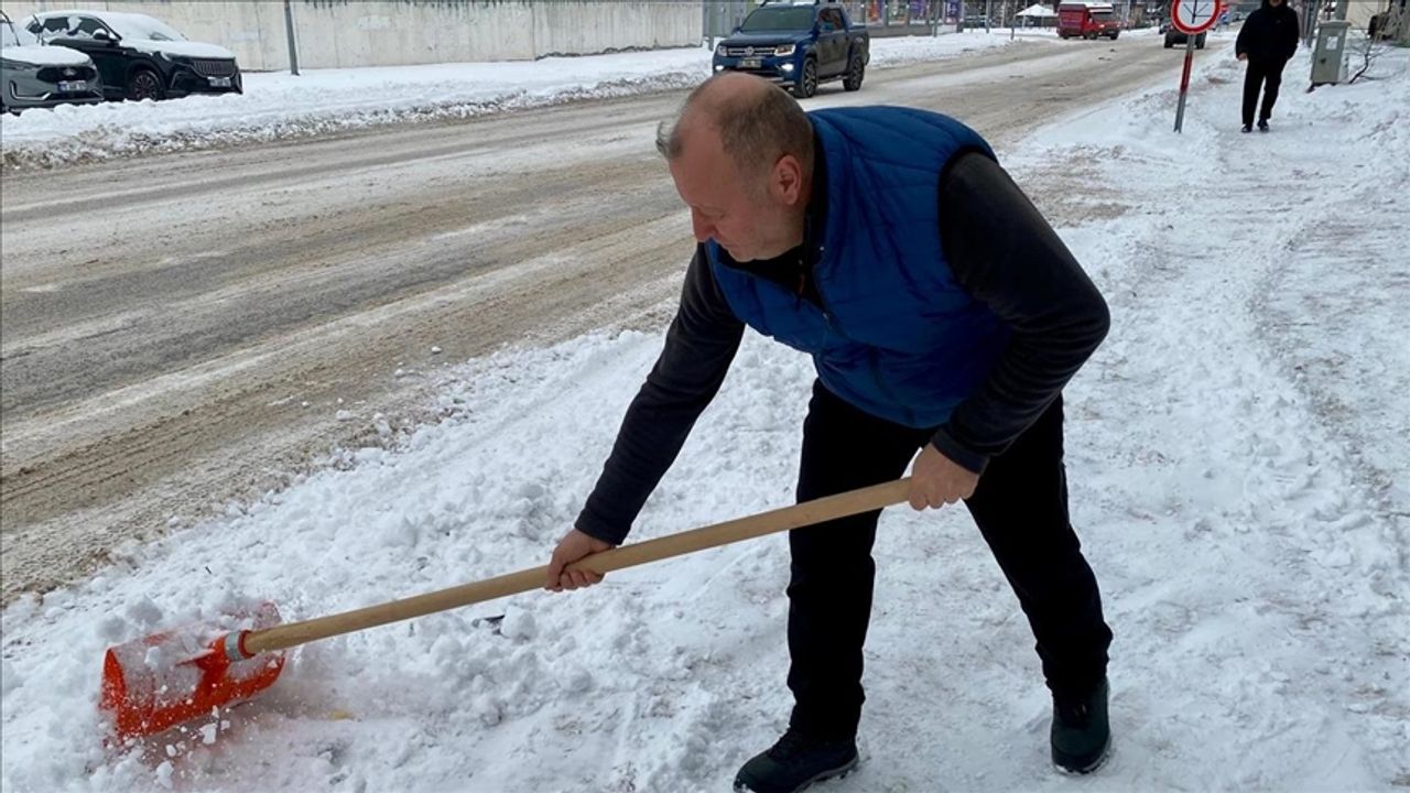 Vatandaşlar evlerinin ve iş yerlerinin önünde biriken karları temizledi. Bazı sürücüler buzlanan yollarda ilerlemekte güçlük çekti.