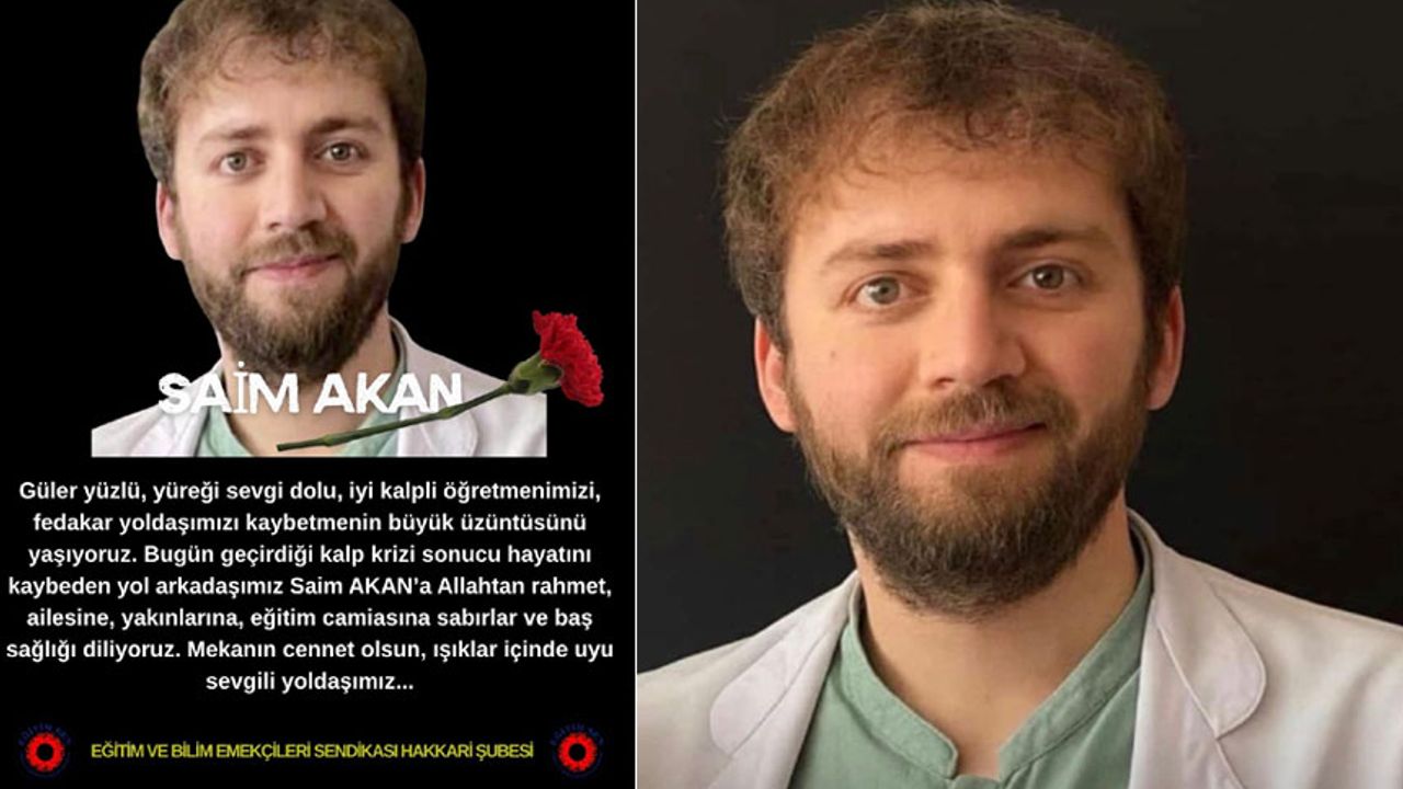 Saim Akan’ın yıllardır özveriyle görev yaptığının altı çizilen açıklamada, “Eğitim ve bilim emekçisi arkadaşımız Saim Akan’ı kaybetmenin derin üzüntüsünü yaşıyoruz. Sadece bir öğretmeni değil; eğitim emekçileri arasında herkes tarafından sevilen, güzel enerjisiyle insanların yüzünde tebessüm bırakan değerli bir yoldaşımızı kaybettik. Çocuklarımız için elinden gelenin fazlasını yapan, fedakâr ve neşe dolu öğretmenimizi yitirdik. Bir öğretmenden fazlasını kaybettik.” ifadelerine yer verildi.