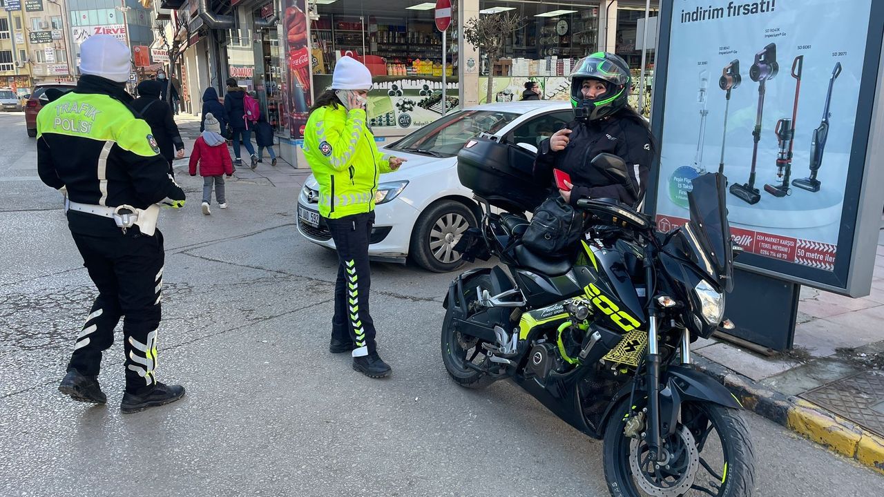 İlçe Emniyet Müdürlüğü ekipleri, çarşı merkezinde motosiklet üzerinde sabit ve seyir halinde uygulama yaptı. Uygulamada 28 motosiklet kontrol edildi. Plakasız motosiklet kullandığı belirlenen 3 ehliyetsiz sürücüye toplam 135 bin 712 lira idari para cezası uygulandı.