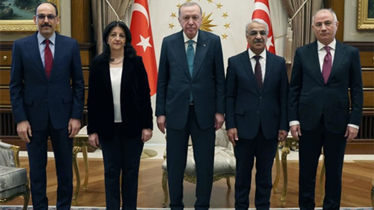 Cumhurbaşkanı Recep Tayyip Erdoğan, DEM Parti heyetinde yer alan TBMM Başkanvekili ve Van Milletvekili Pervin Buldan ile Şanlıurfa Milletvekili Mithat Sancar'ı kabul etti.