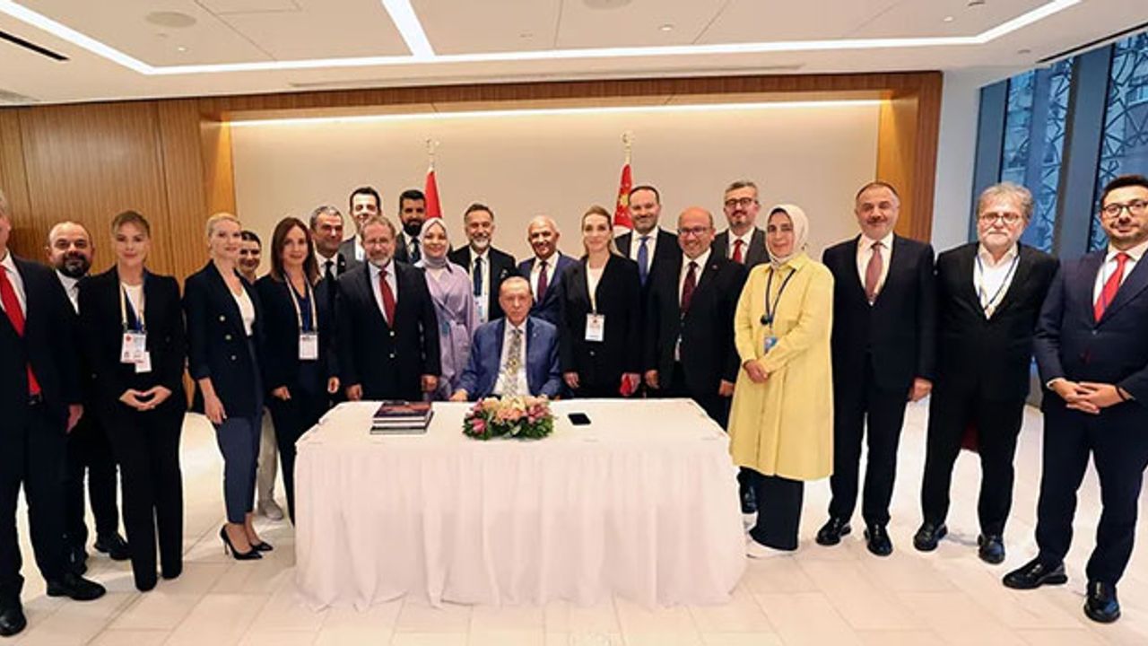 Cumhurbaşkanı Erdoğan, New York ziyareti boyunca birçok kabul ve görüşme gerçekleştirdiklerini hatırlatarak, "Bu çerçevede Gürcistan Başbakanı Sayın Garibaşvili, SpaceX ve Tesla'nın kurucusu Elon Musk, Cezayir Cumhurbaşkanı Sayın Tebbun, NATO Genel Sekreteri Sayın Stoltenberg, Polonya Cumhurbaşkanı Sayın Duda, İtalya Başbakanı Sayın Meloni, İsrail Başbakanı Sayın Netanyahu, Yunanistan Başbakanı Sayın Miçotakis, Güney Afrika Cumhurbaşkanı Sayın Ramaphosa ve Malezya Başbakanı Sayın Enver İbrahim ile son derece verimli ve samimi görüşmelerimiz oldu. Bu görüşmelerde hem ülkemizdeki yatırım imkanlarını hem ticari iş birliklerini hem de gündemimizdeki diğer meseleleri ele aldık." dedi.