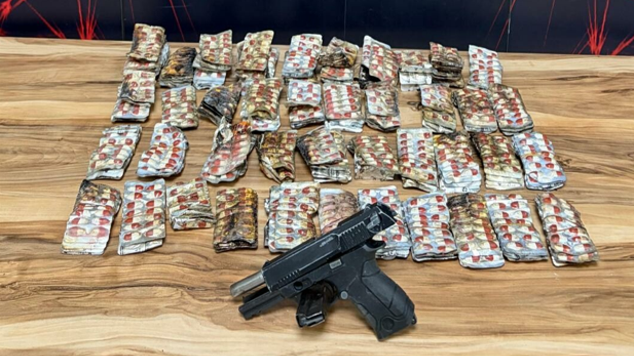 Karabağlar İlçe Emniyet Müdürlüğü'ne bağlı ekipler dün, Limontepe Mahallesi'nde silahla ev basıldığı ihbarı üzerine bölgeye gitti. Evde yangın çıktığını gören ekipler, olay yerinden dışarı çıkan 7 şüphelinin bölgeden ayrılmasına izin vermedi. İtfaiye ekiplerinin yangına müdahalesinin ardından evde ve bitişiğindeki diğer evde arama yapan polis, 1 ruhsatsız tabanca, 2 bin 926 uyuşturucu ecza, 3 fişek ve 1 kovan ele geçirdi.