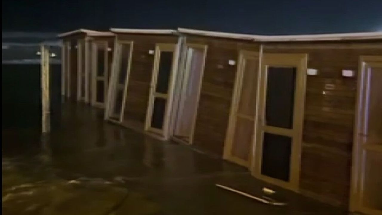 Denizin taşarak yola ulaştığı anlar çevrede bulunan güvenlik kameralarına yansıdı. Görüntülerde dalgaların kıyıya sert şekilde vurduğu ve deniz suyunun yola taştığı görüldü.