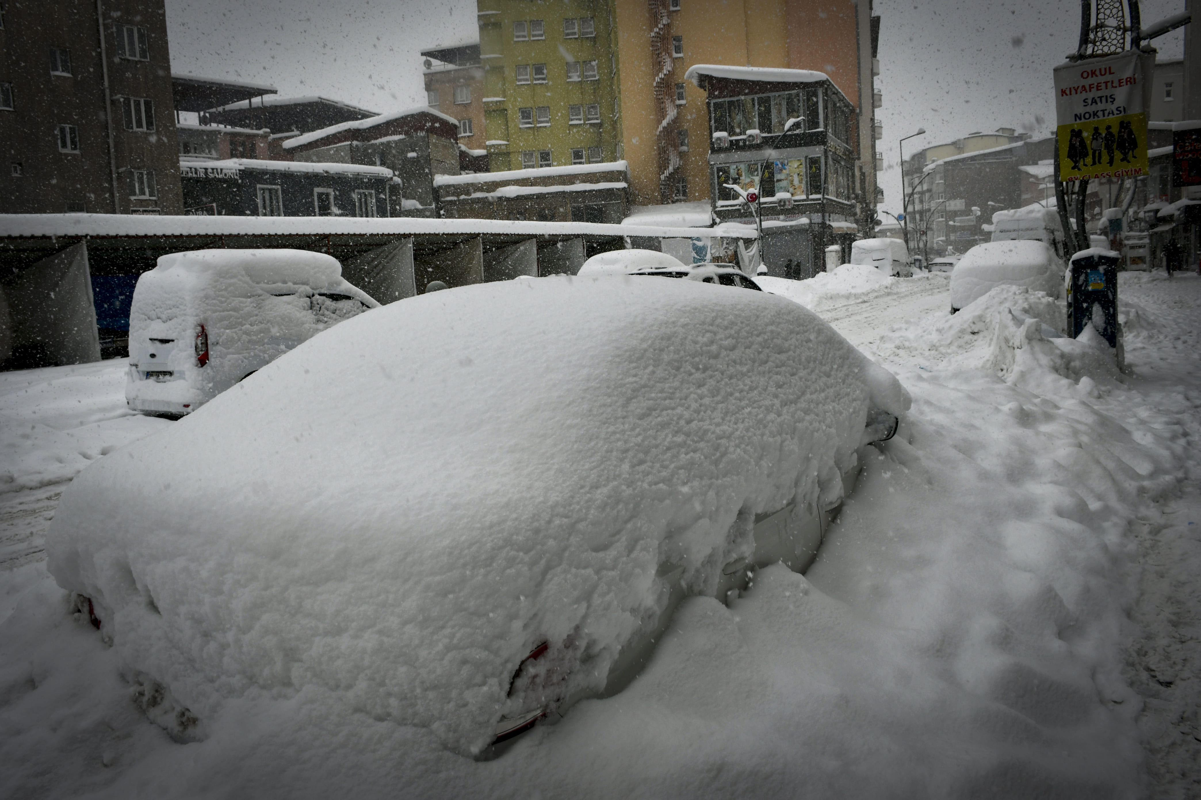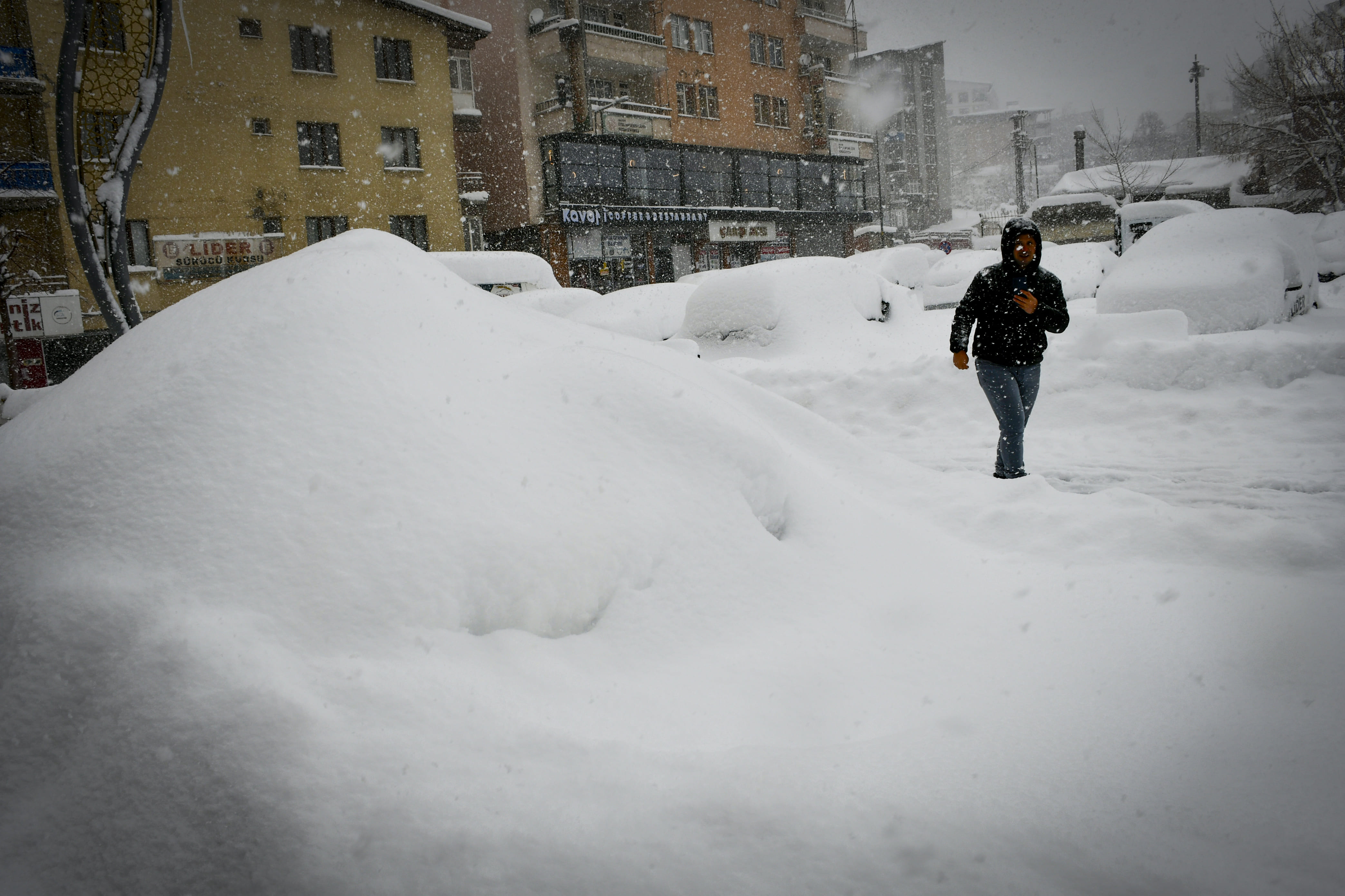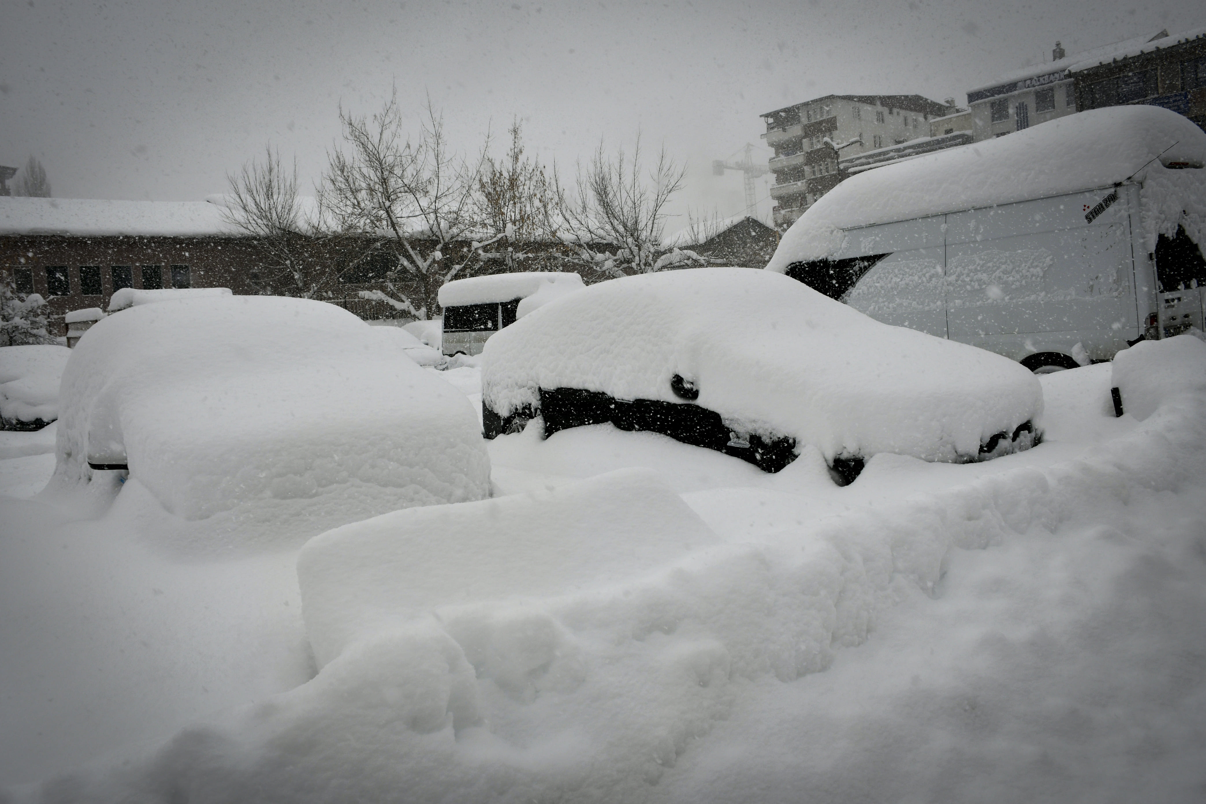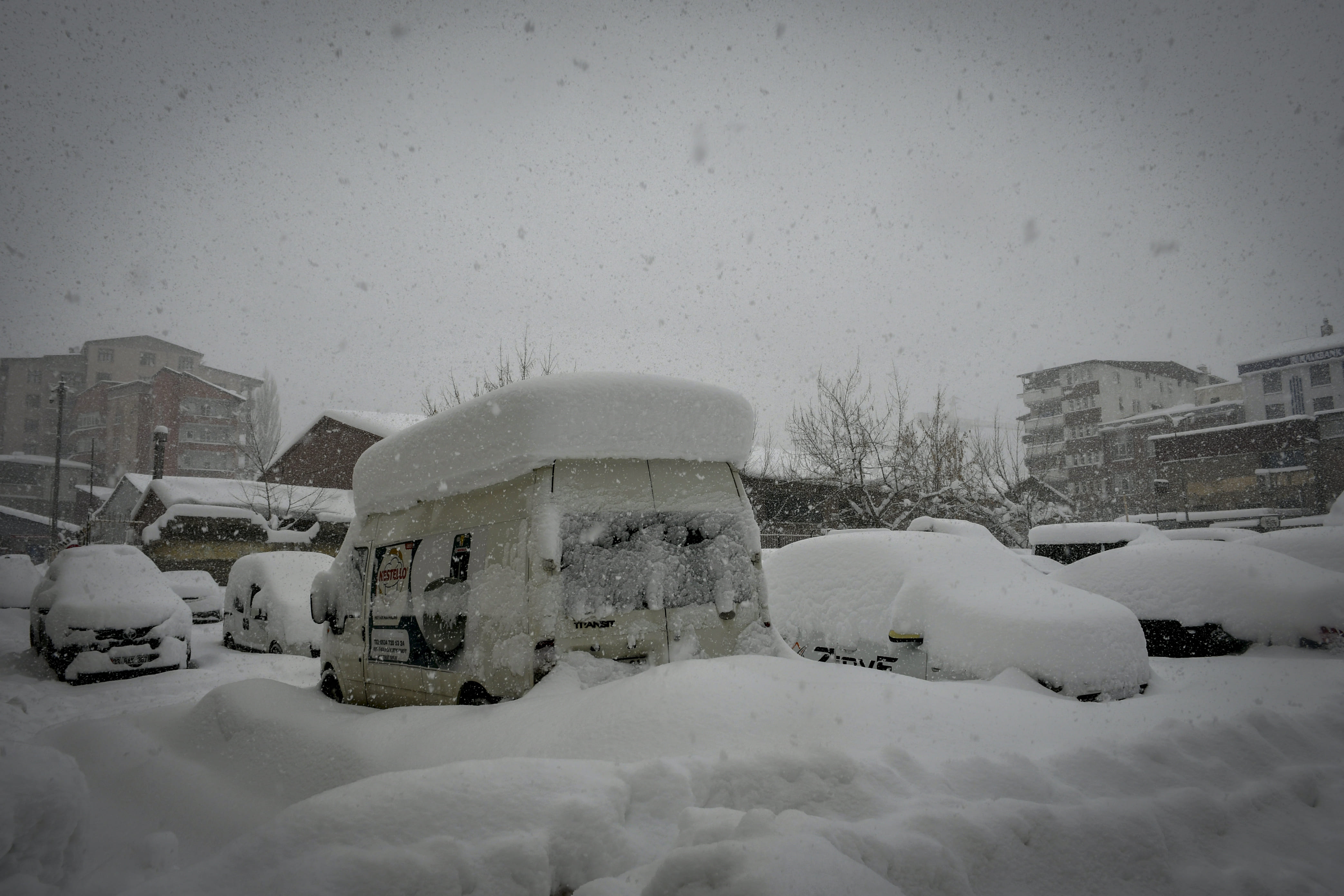 Hakkari'de son bir haftadır etkili olan kar yağışı nedeniyle park halindeki araçlar ve tek katlı evler adeta kara gömüldü.