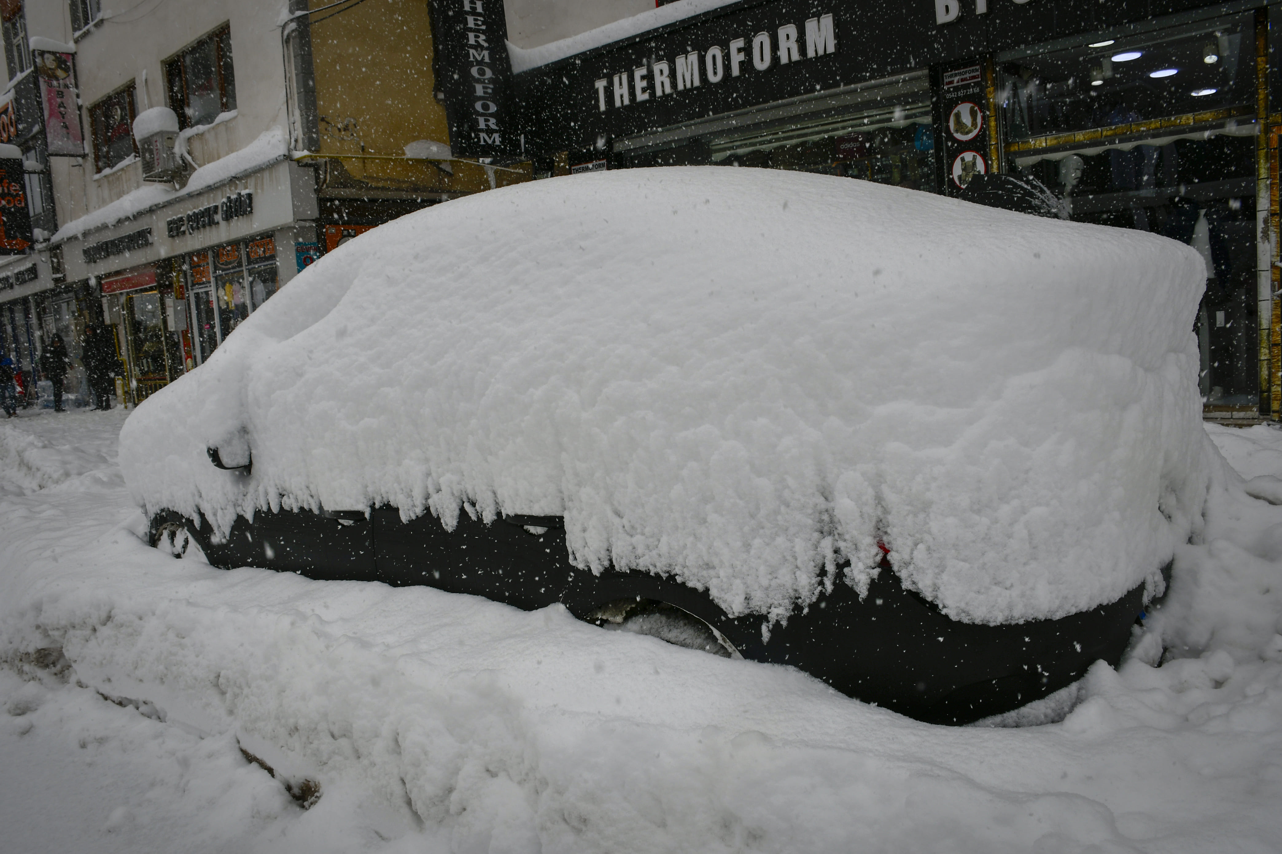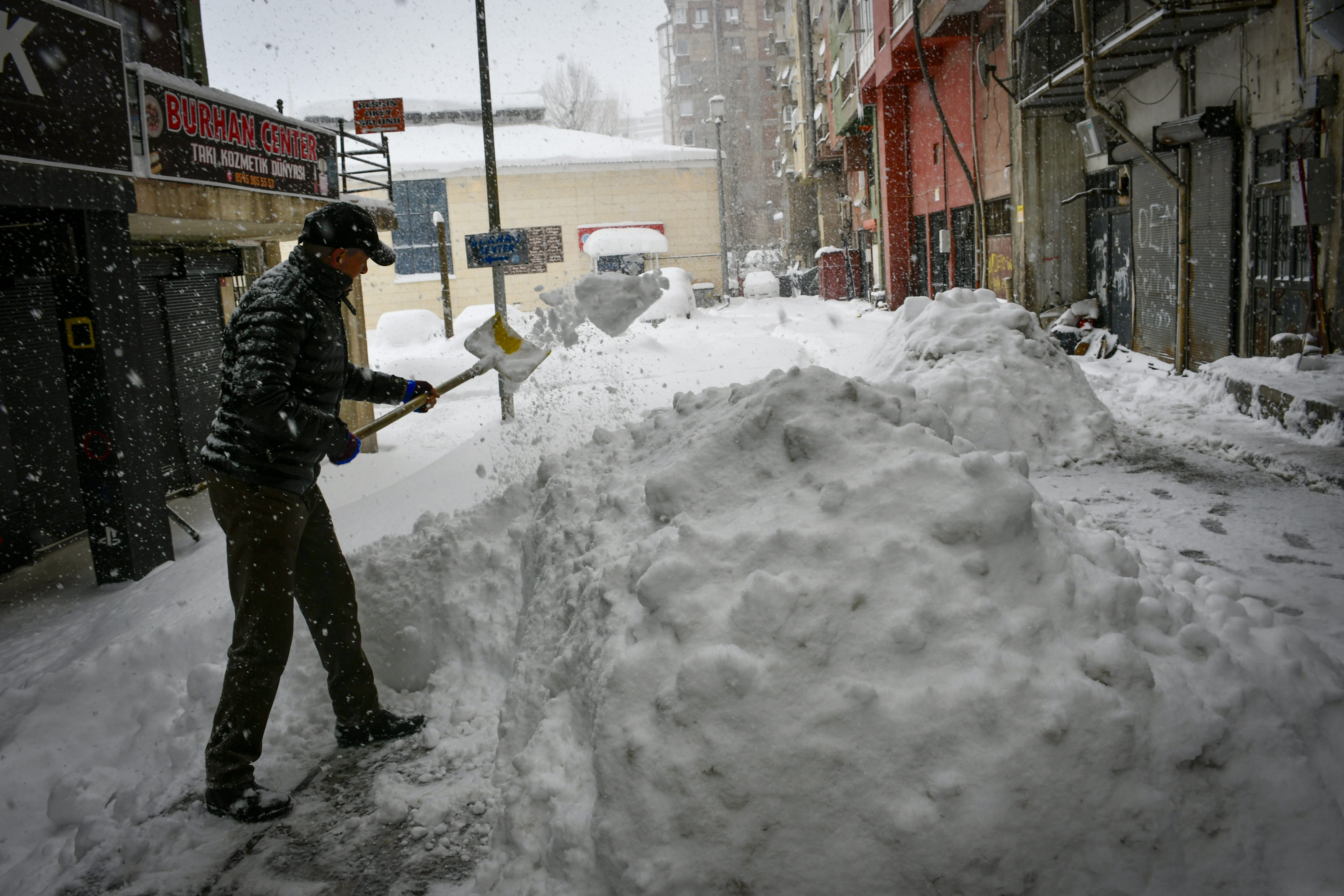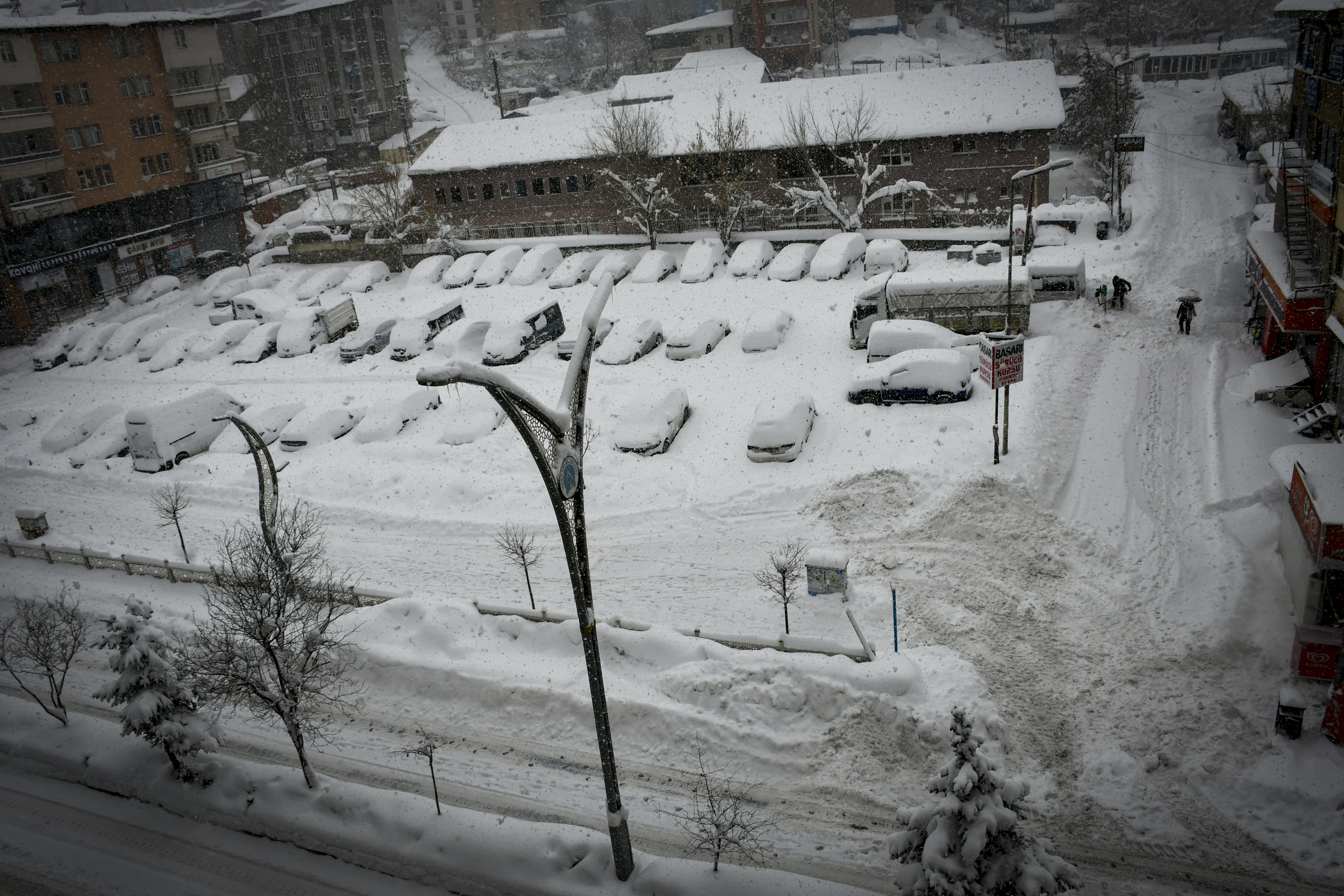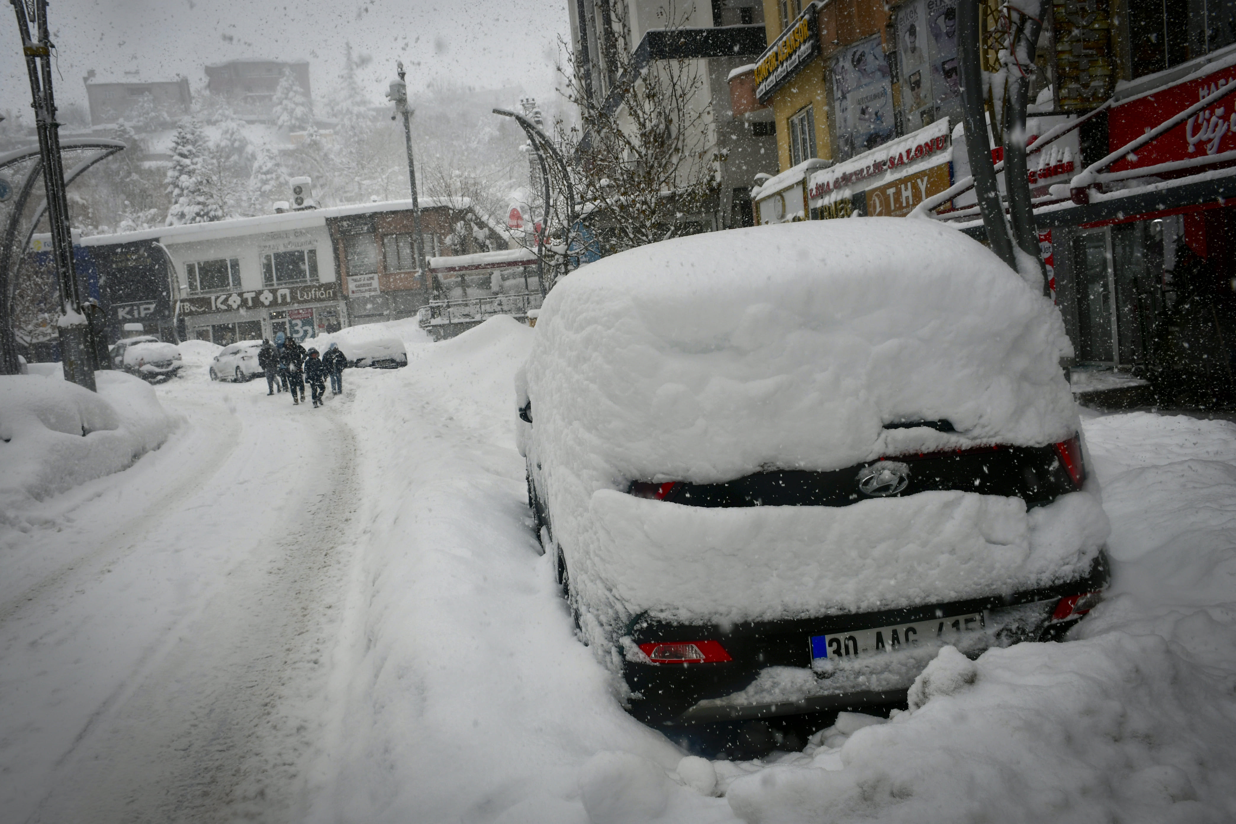 Hakkari'de son bir haftadır etkili olan kar yağışı nedeniyle park halindeki araçlar ve tek katlı evler adeta kara gömüldü.