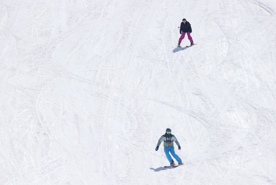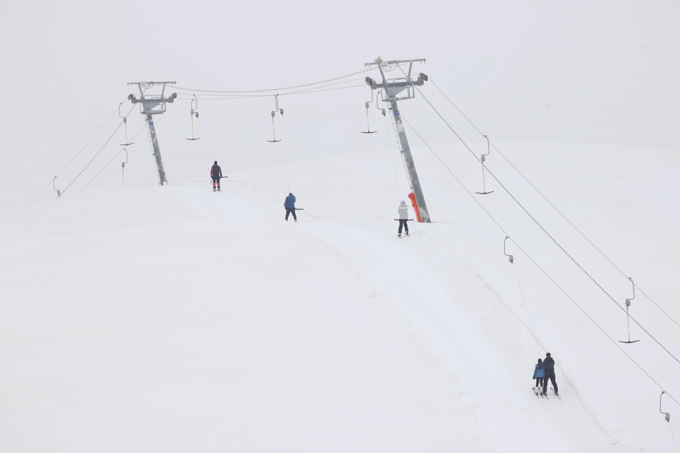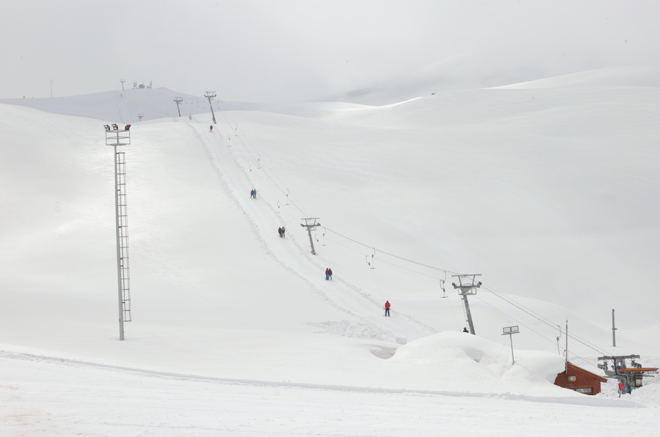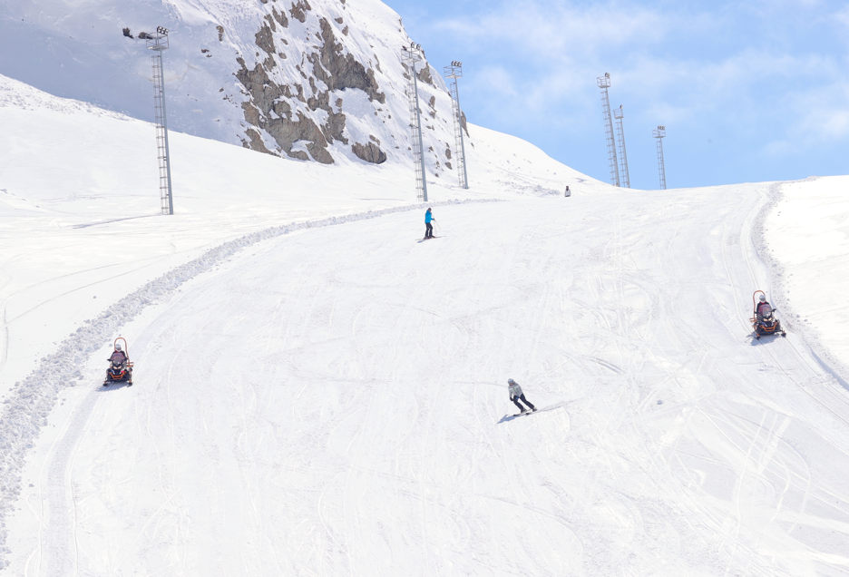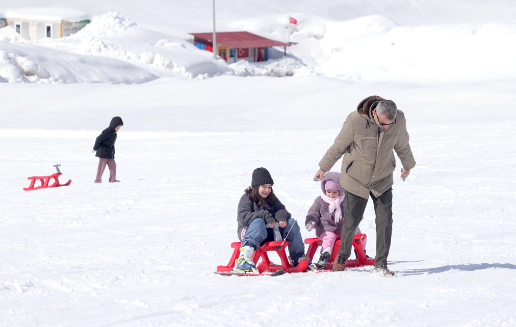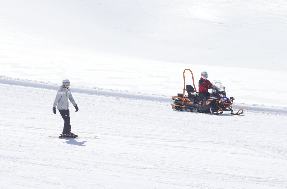 Hakkari'de doğal parkurlarıyla öne çıkan 2 bin 800 rakımdaki Mergabütan Kayak Merkezi, ilkbaharda da ziyaretçilerine kayak yapma imkanı sağlıyor.