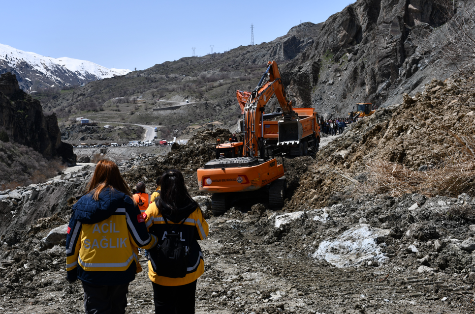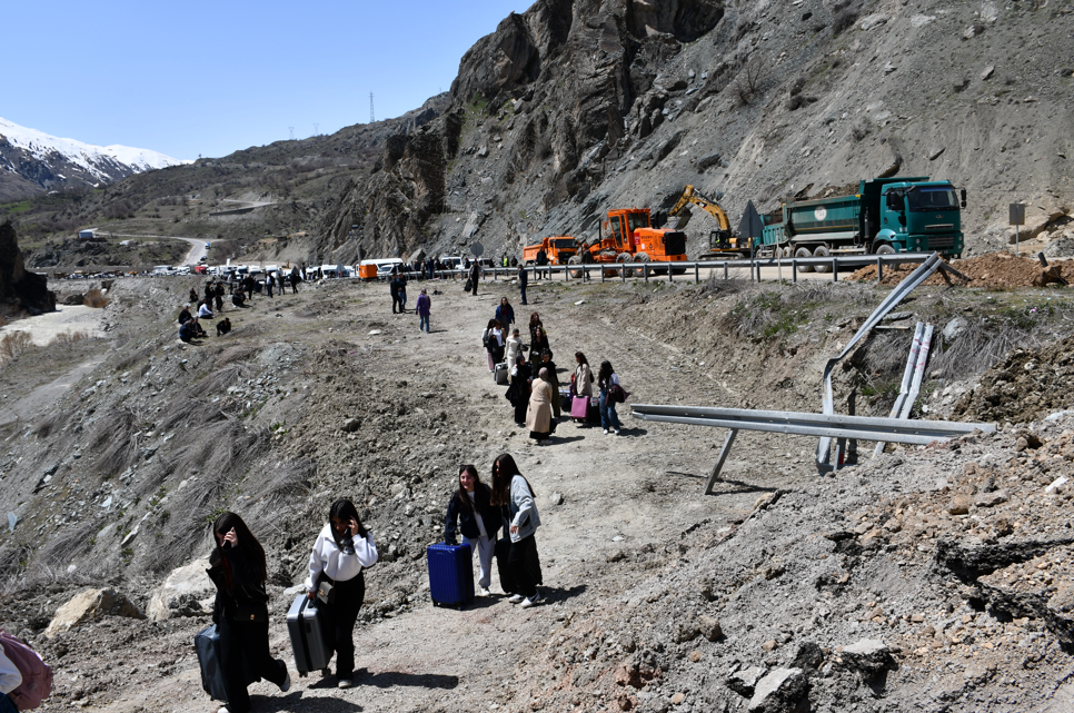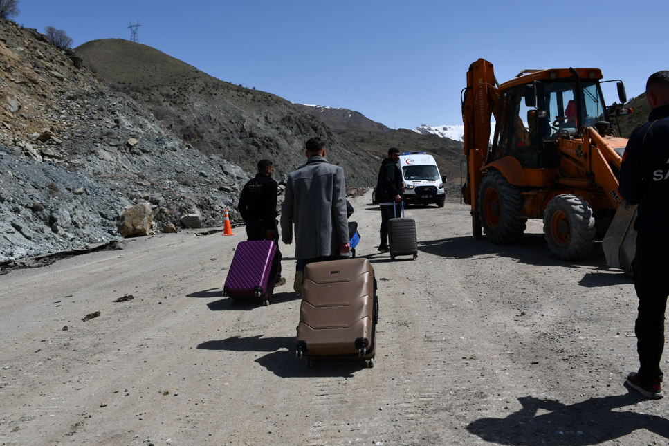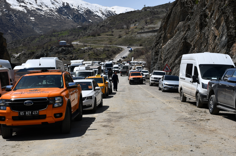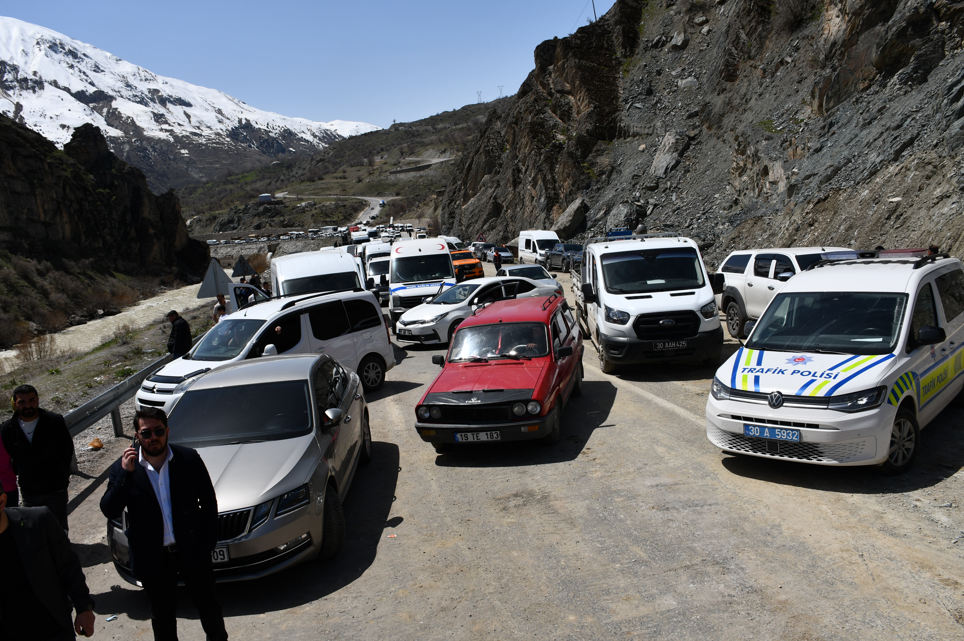 Hakkari'de meydana gelen heyelan yolu kullananlar için çileye döndü. Yüzlerce araçtaki binlerce kişi saatlerce yolun açılmasını bekledi.