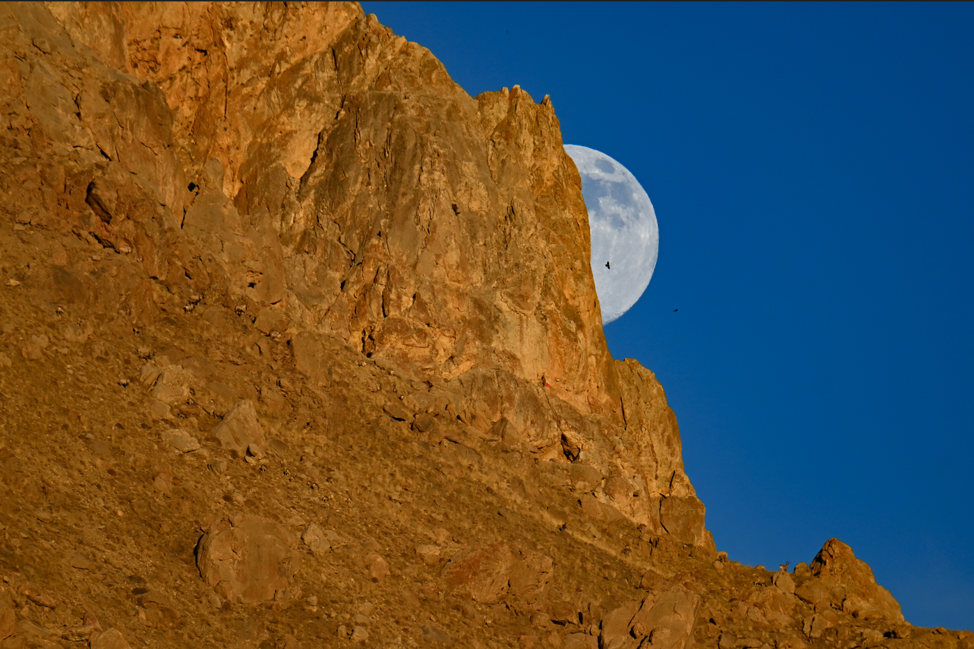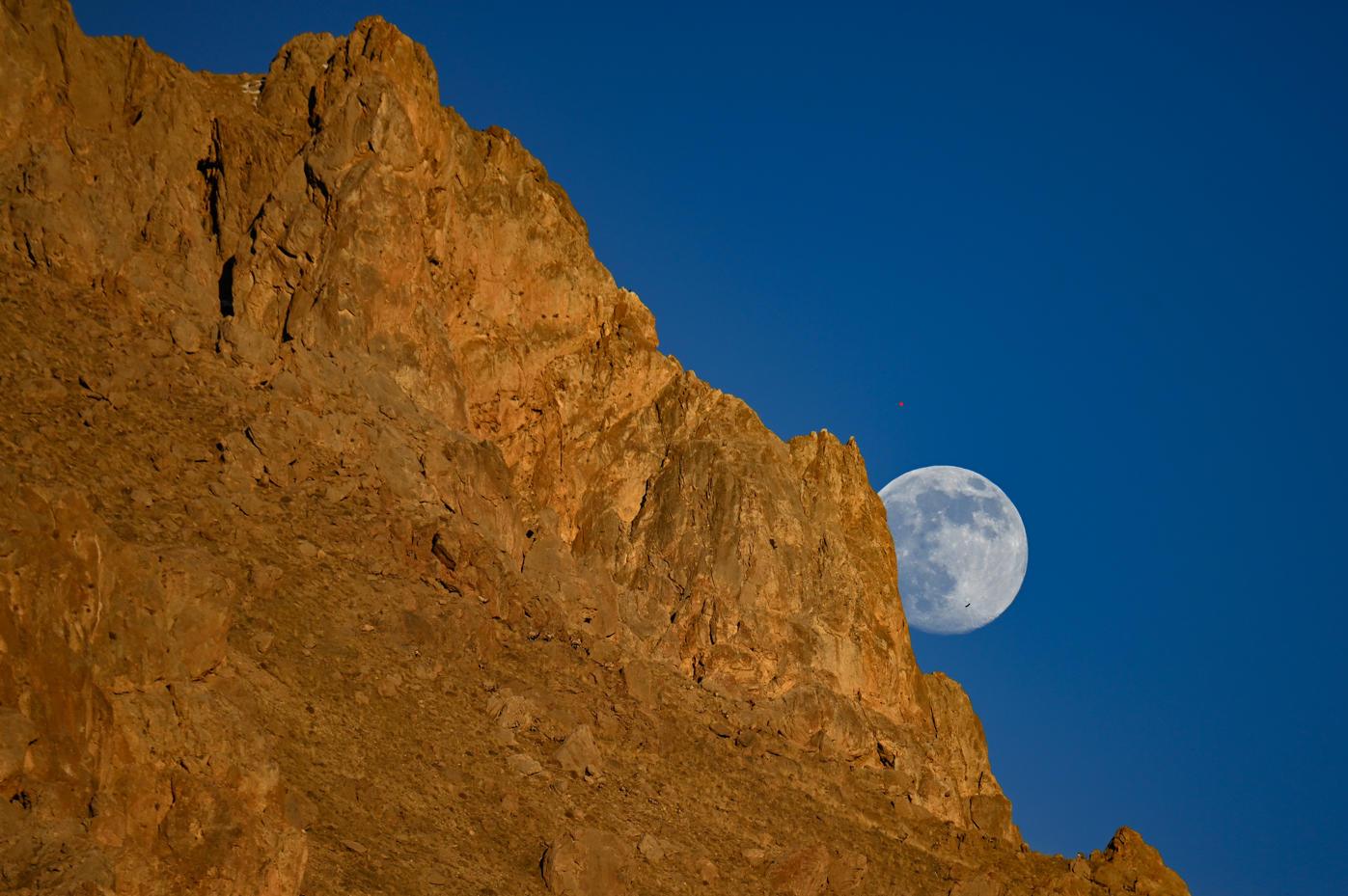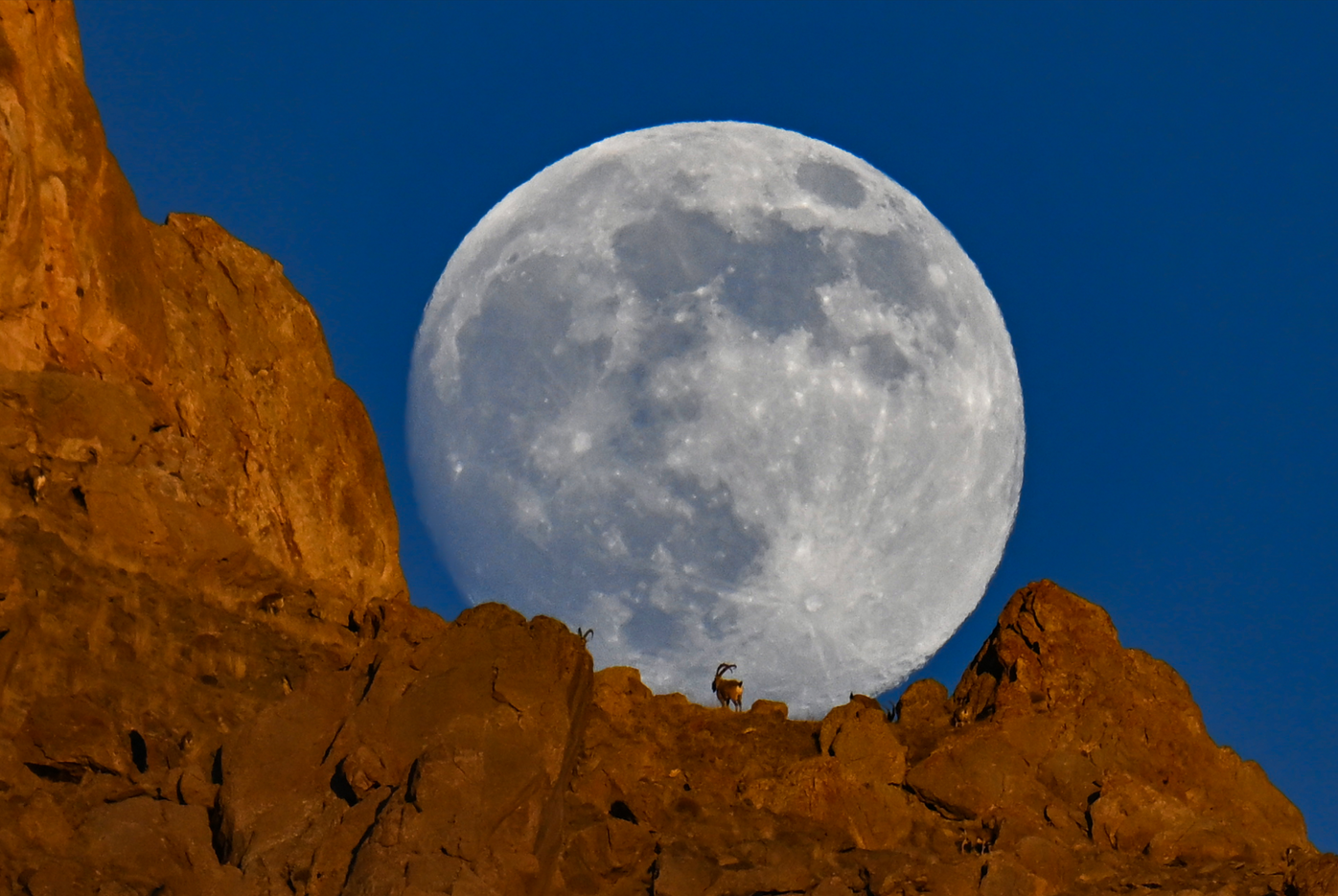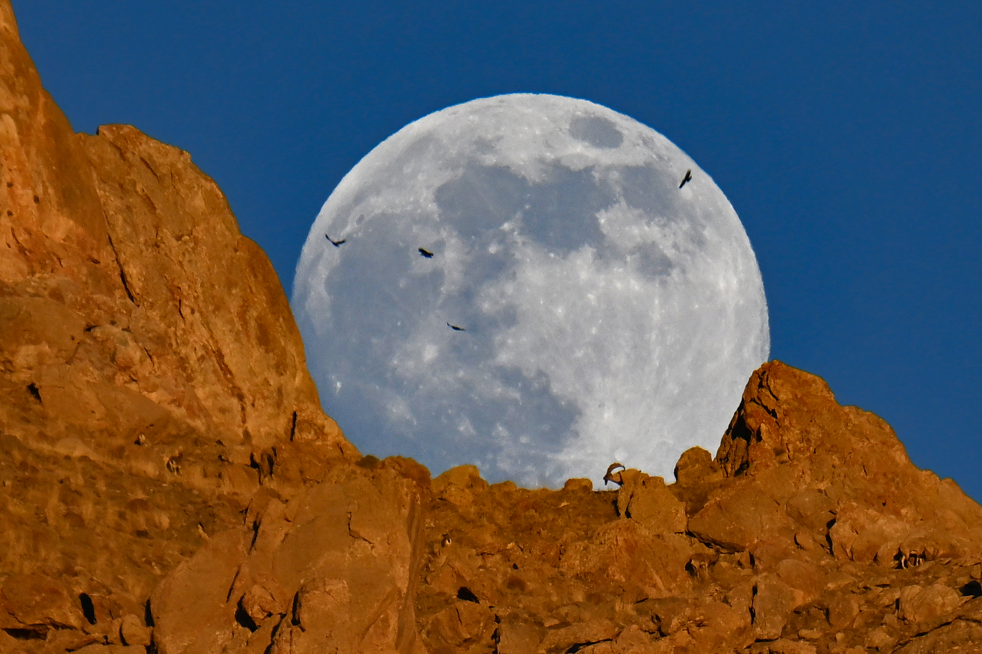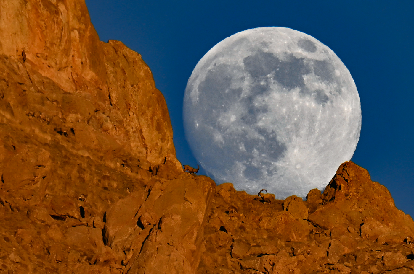 Van'ın Gürpınar ilçesinde nesli koruma altındaki yaban keçileri, dağın arkasından yükselen dolunayla birlikte görüntülendi.