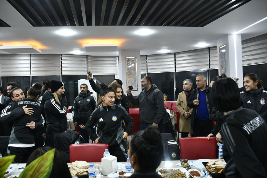 YÜKSEKOVA – Turkcell Kadın Futbol Süper Ligi’nin 12. haftası kapsamında Yüksekova Spor Kulübü ile karşılaşmak üzere Hakkari’ye gelen Beşiktaş Kadın Futbol Takımı, maç öncesinde düzenlenen dostluk yemeğinde Yüksekova Spor camiasıyla bir araya gelerek futbolun birleştirici ve centilmenlik ruhunu sahaya yansıttı.