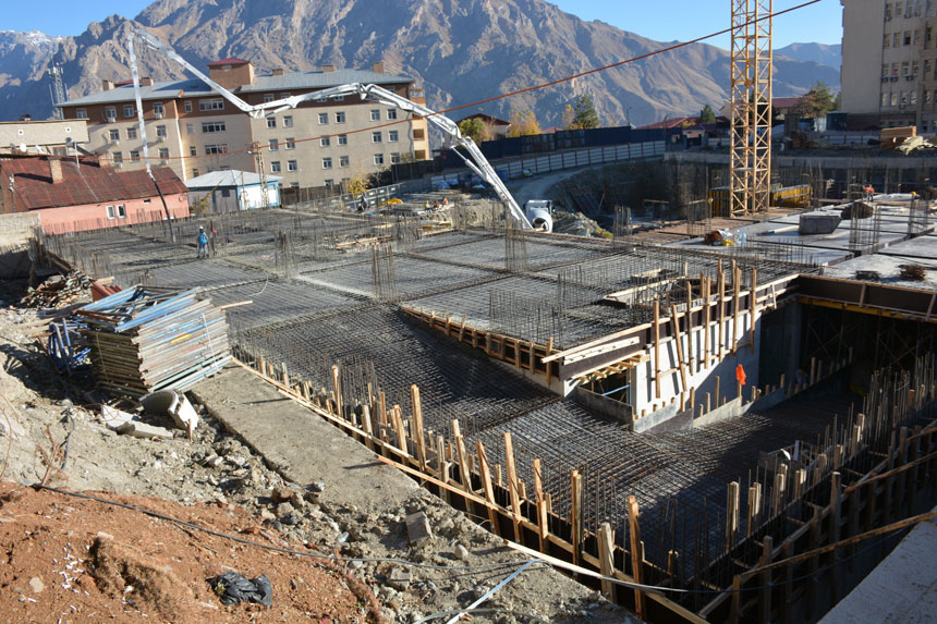 HAKKARİ - Hakkari Adalet Sarayı inşaatında Haziran’da başlayan çalışmalarda zemin güçlendirme işlemleri tamamlandı, şimdi zemin kat seviyesine ulaşmak için çalışmalar sürüyor.