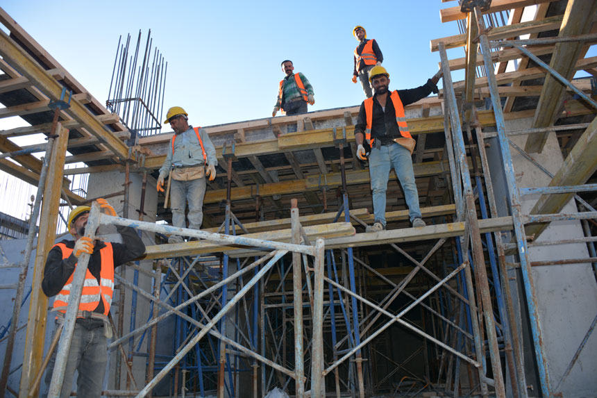Şantiye Şefi Celal Oruç, ana firma kadrosunun 10 kişiden oluştuğunu, ayrıca 50 kişilik kalıpçı-demirci ekibi ve 2 kişilik iş sağlığı ve güvenliği ekibiyle sahada çalıştıklarını ifade etti.