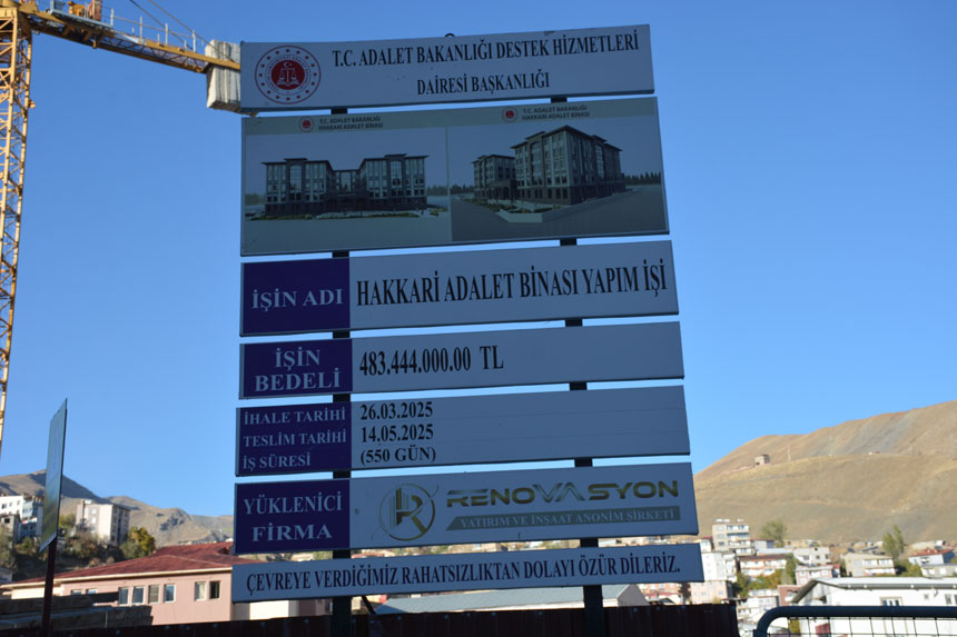 Yüklenici firma Renovasyon Yatırım ve İnşaat A.Ş. tarafından yapımı üstlenilen Hakkari Adalet Binası’nın inşaatına Haziran ayında kazı çalışmalarının başlamasıyla adım atıldı.