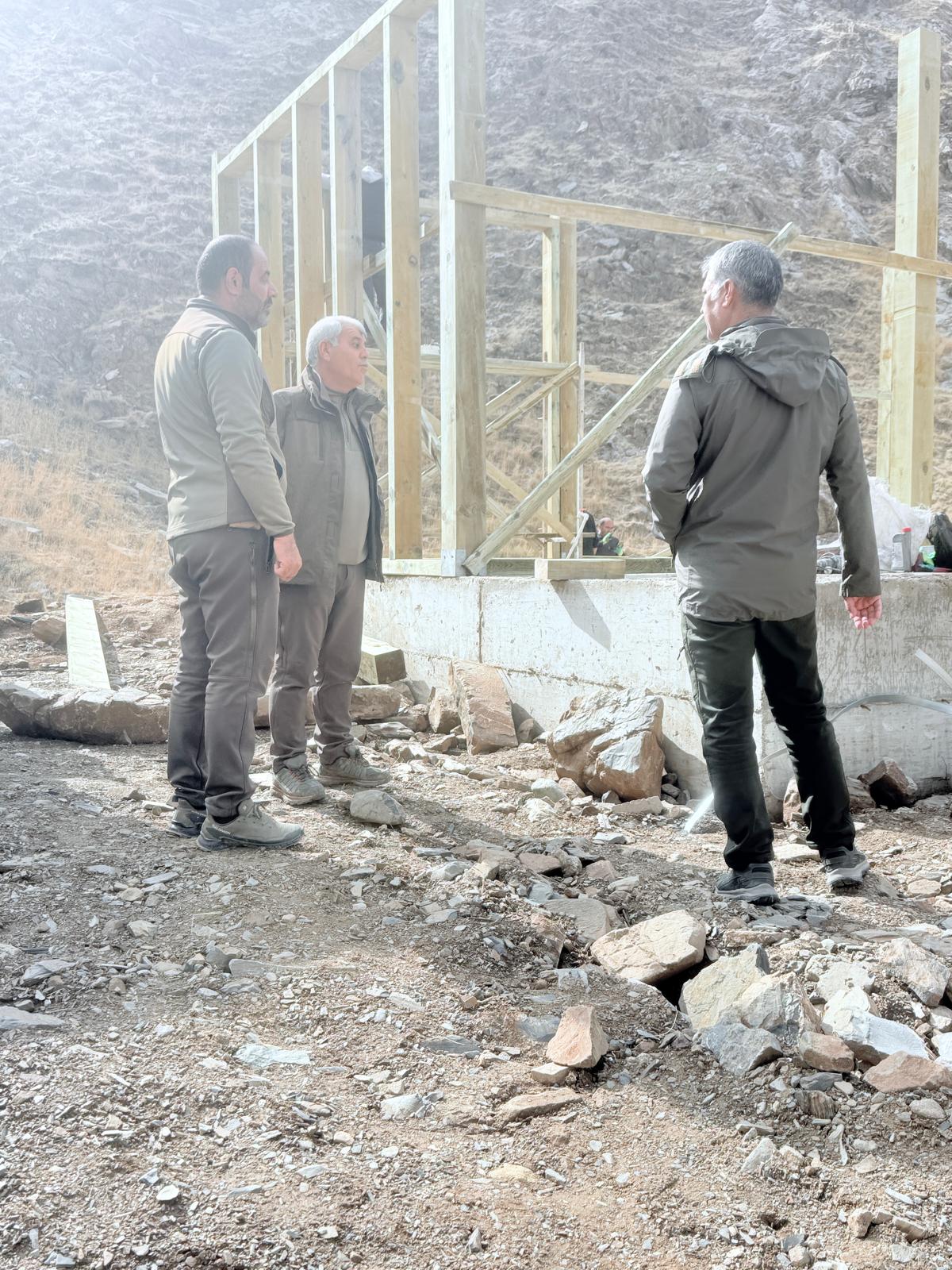 HAKKARİ- Van Doğa Koruma ve Milli Parklar 14. Bölge Müdürü Melikunnas Özkaya, Milli Parklar Şube Müdürü Abdulcelil Özkan ve Hakkari DKMP İl Müdürü Necmettin Yılmaz, Hakkari’de bulunan Cilo ve Sat Dağları Milli Parkı’nda yapımı süren giriş takı ve giriş kontrol noktası çalışmalarını yerinde denetledi.