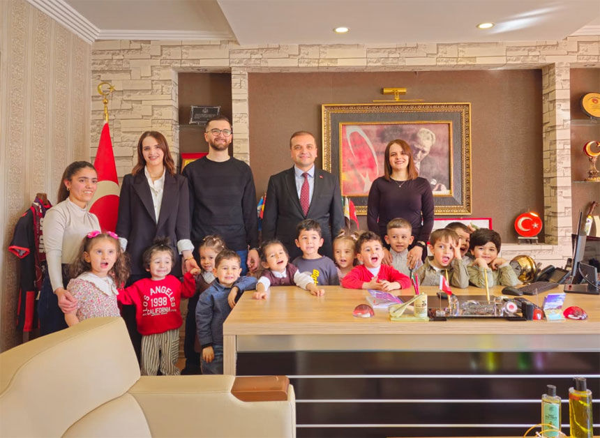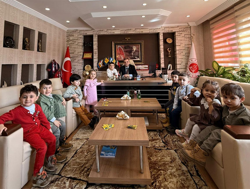 Öğretmenlerinin eşlik ettiği minikler, bayramın coşkusunu ve heyecanını yaşarken yüzlerindeki mutluluk görülmeye değerdi. Makamda sıcak ve samimi anların yaşandığı ziyarette çocukların neşesi ortama ayrı bir renk kattı.