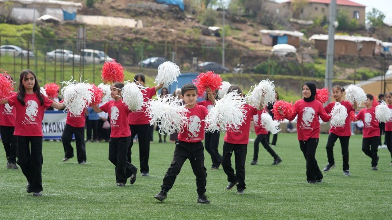 Derecik İlçe Stadyumu'nda düzenlenen etkinlikte, saygı duruşunda bulunuldu ardından İstiklal Marşı okundu.