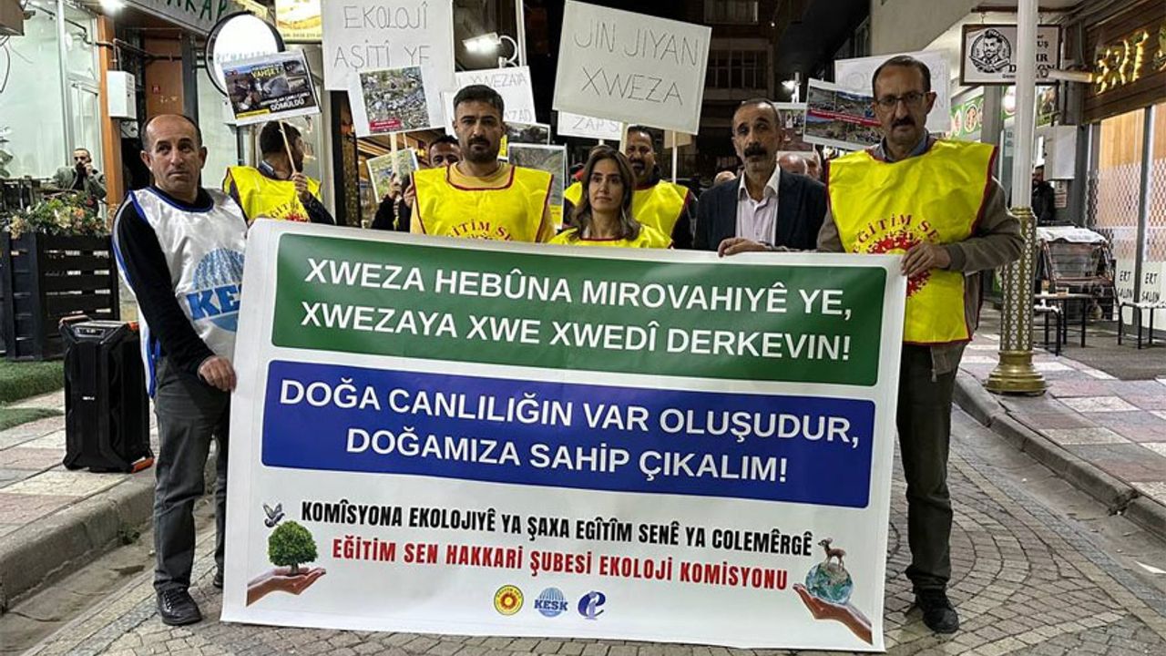 HAKKARİ – Eğitim Sen Hakkari Şubesi Ekoloji Komisyonu, doğa tahribatına dikkat çekmek ve çevre bilincini artırmak amacıyla “Özgür Doğa, Özgür Toplum” başlıklı bir basın açıklaması düzenledi.