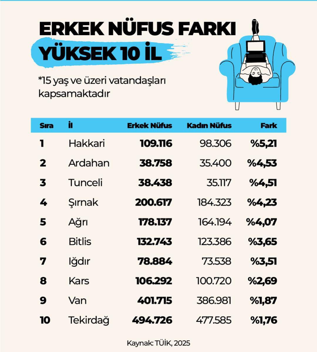 Uzmanlar, bölgedeki güvenlik, kamu görevlisi yoğunluğu ve demografik yapı gibi faktörlerin erkek nüfus oranının yüksek çıkmasında etkili olabileceğini belirtiyor.