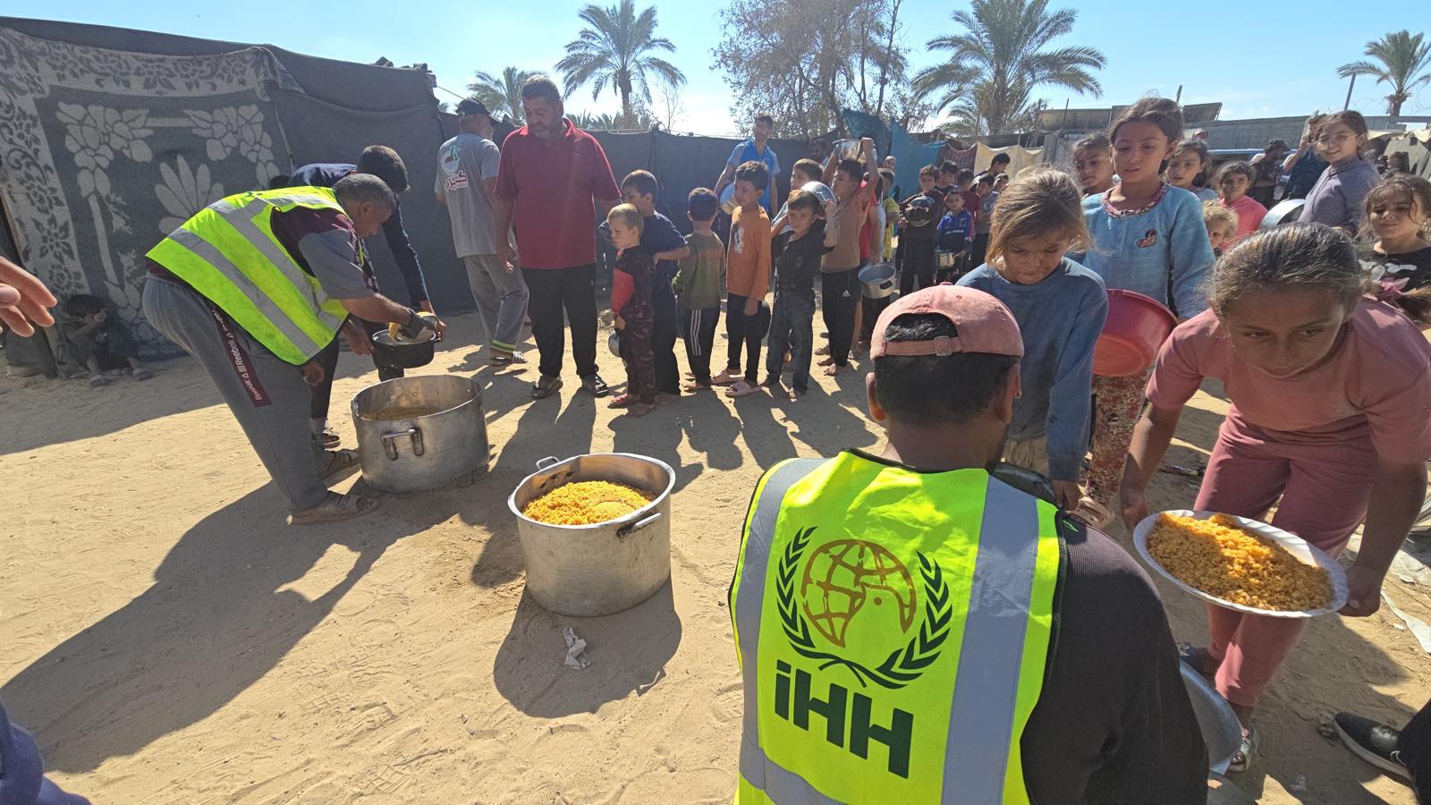 İHH gönüllüleri, yemekleri Filistinli çocukların getirdiği tencere ve kaplara doldurarak dağıttı. Yardım faaliyeti, kamptaki aileler arasında dayanışma ve umut duygularını güçlendirdi.