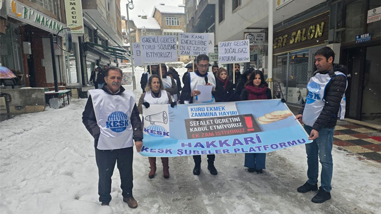 KESK Hakkari Şubeler Platformu tarafından yapılan basın açıklamasında, kamu emekçilerinin her geçen gün insanca yaşam koşullarından ve güvenceli çalışma ortamından daha da uzaklaştığı vurgulandı.