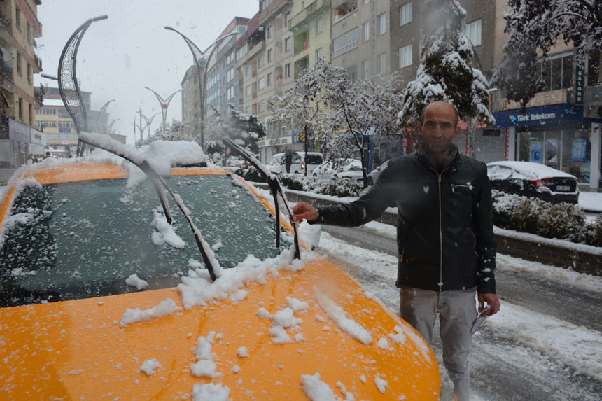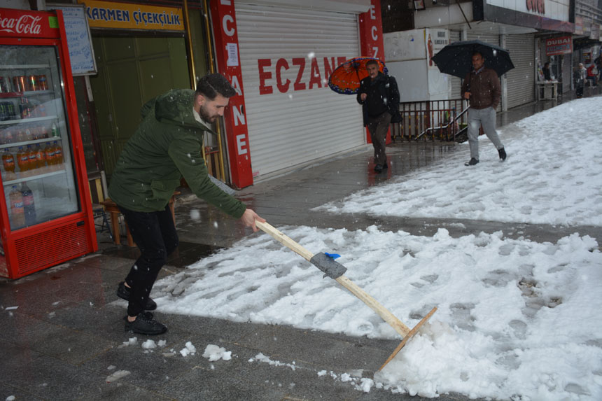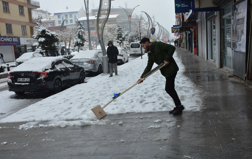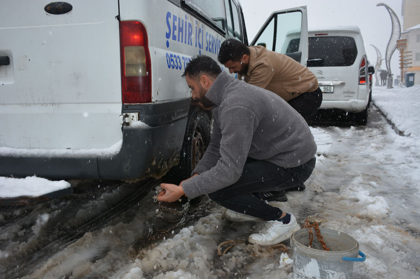 Araçların üzeri karla kaplanırken, esnaflar iş yerlerinin önünde biriken karları temizlemek için küreklerle çalıştı. Vatandaşlar, kar yağışının bu yıl erken başladığını belirtti. Bazı sürücüler ise araçlarına zincir takarak önlem aldı.