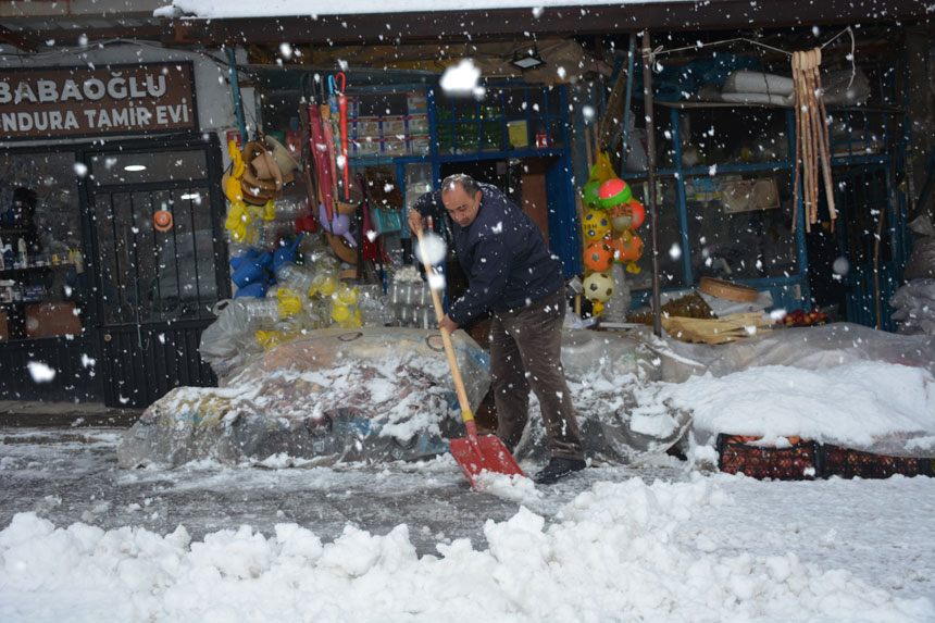 Gece saatlerinde sağanak olarak başlayan yağış, sabahın ilk ışıklarıyla birlikte lapa lapa kar yağışına dönüştü. Kenar mahallelerde kar kalınlığı yer yer 10 santimetreyi bulurken, çarşı merkezinde ise 5 santimetrenin üzerine çıktı.