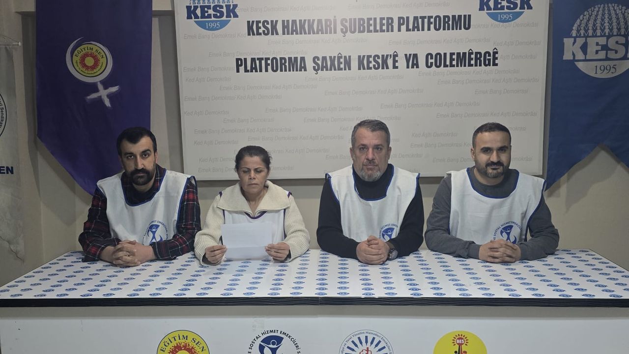 HAKKARİ- KESK Hakkari Şubeler Platformu toplantı salonunda düzenlenen basın açıklamasını Sağlık ve Sosyal Hizmet Emekçileri Sendikası Şube Eş Başkanı Gülay Çetin okudu.