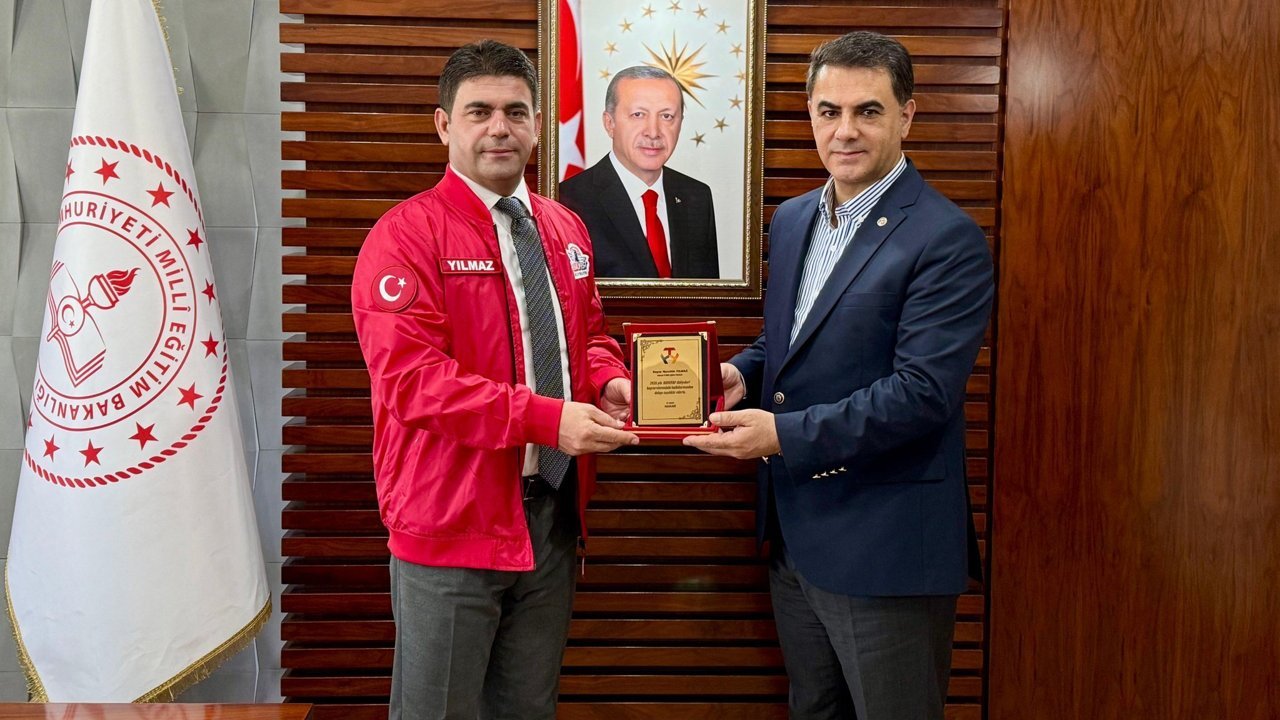 Ziyaretin sonunda, eğitime ve teknolojiye sağladığı katkılardan dolayı İl Millî Eğitim Müdürü Nurettin Yılmaz’a teşekkür plaketi takdim edildi.