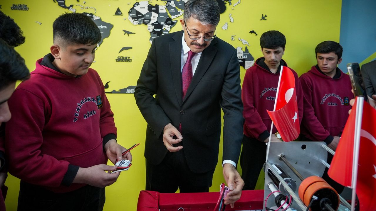 Robotik sınıfında faaliyet gösteren 11 kişilik Bezoar Robotics Takımı’nın çalışmalarına da özel ilgi gösteren Vali Çelik, öğrencilerden projeleri hakkında bilgi aldı. Takımın, lise düzeyinde dünyanın en prestijli robotik organizasyonları arasında yer alan FIRST Robotik Competition kapsamında düzenlenen yarışmalara hazırlandığı aktarıldı. Bezoar Robotics adını, Cilo Dağları’nda yaşayan Bezoar dağ keçisinden alırken, bu ismin dayanıklılık, denge ve zorlu koşullara uyumu temsil ettiği belirtildi.