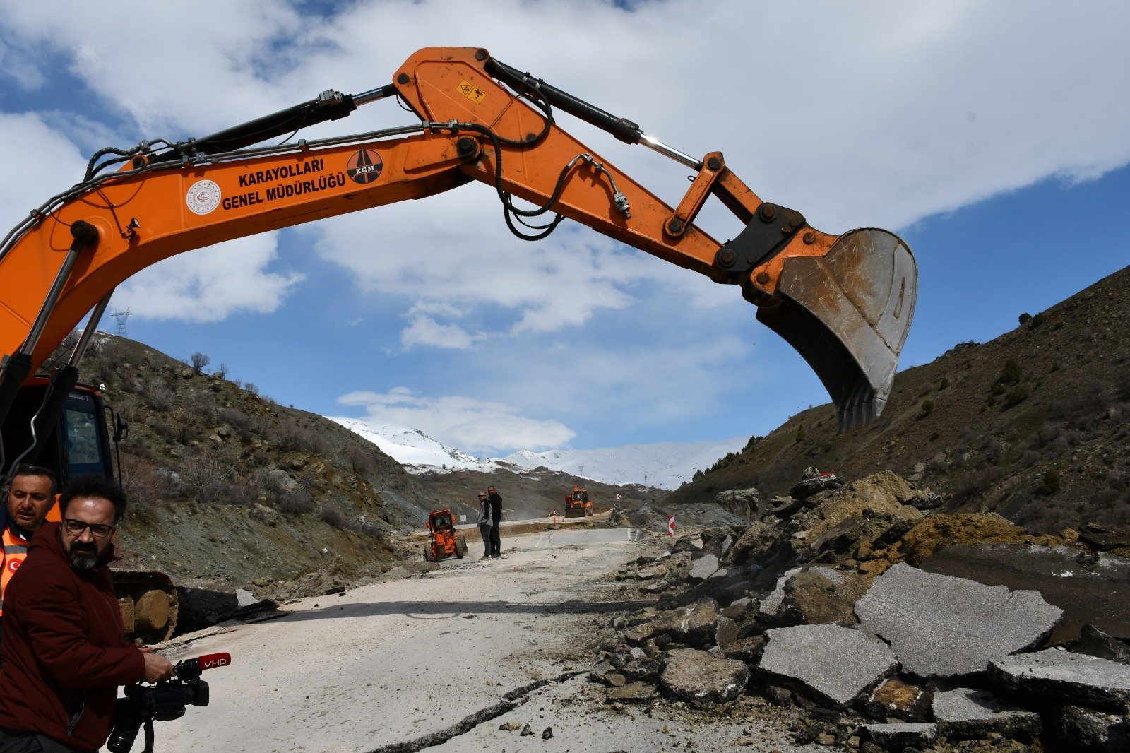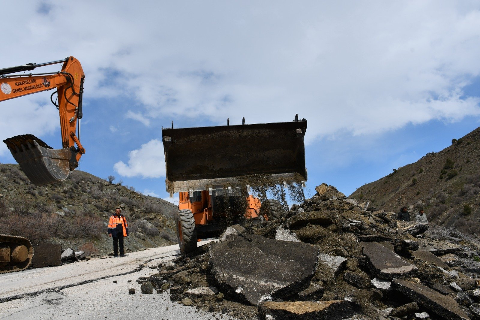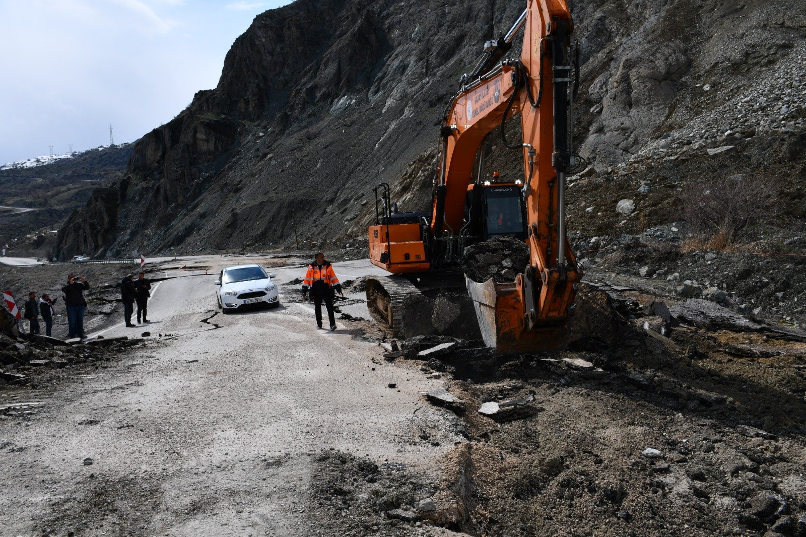 Heyelanın ardından bölgeye sevk edilen Karayolları Bölge Müdürlüğü ekipleri, güvenlik önlemleri alarak çalışma başlattı.