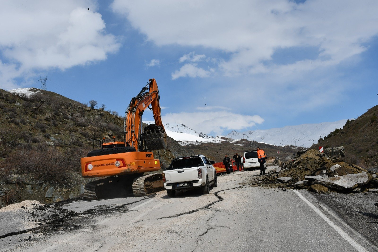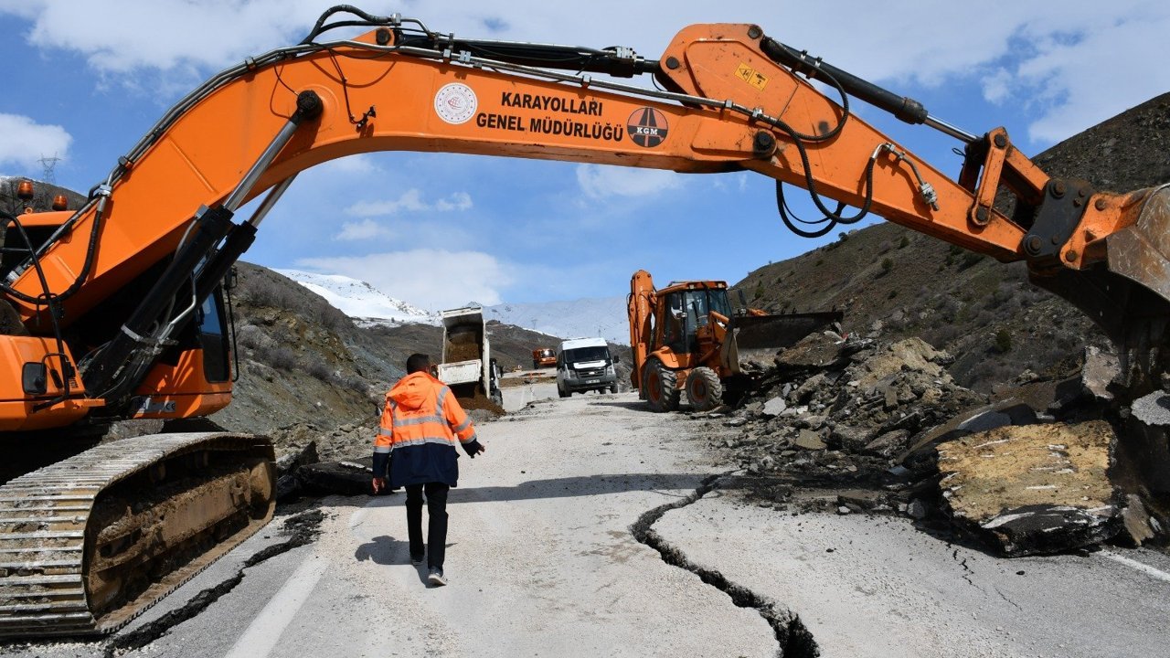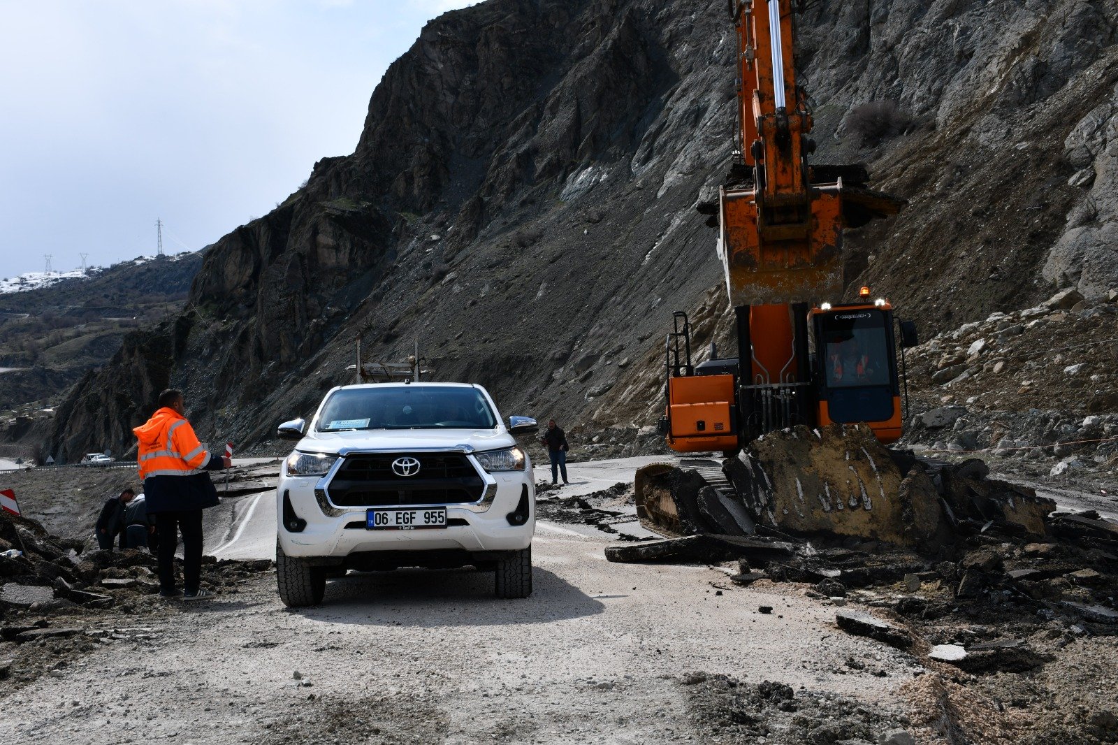 Heyelanın ardından bölgeye sevk edilen Karayolları Bölge Müdürlüğü ekipleri, güvenlik önlemleri alarak çalışma başlattı.