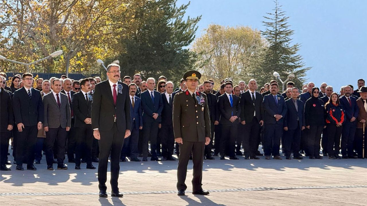 Atatürk'ün ebediyete intikal ettiği saat olan 09.05'te sirenlerin çalmasıyla 2 dakikalık saygı duruşunda bulunuldu, İstiklal Marşı okundu.