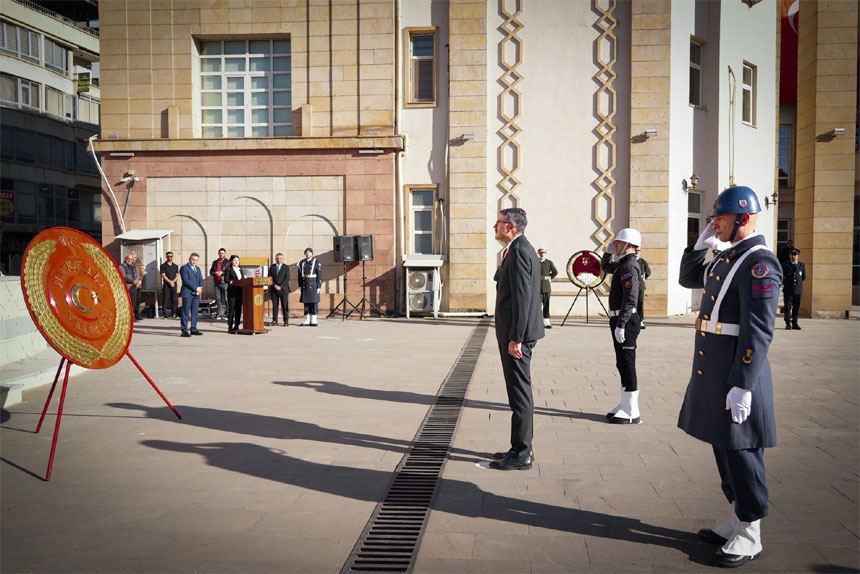 HAKKARİ - Valilik önünde düzenlenen tören, Vali Ali Çelik ile Garnizon Komutanı Tümgeneral Ferat Vural'ın Atatürk Anıtı'na çelenk sunmasıyla başladı.