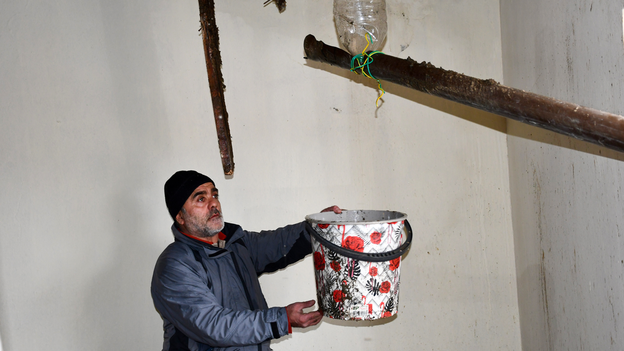 6 kişinin yaşadığı evde, çökme ve tavandan sızan su nedeniyle eşyalar kullanılamaz hale geldi. Damdan kopan toprak, tahta ve ahşap parçalarının odanın içine düşmesi sonucu evin büyük bölümünde hasar oluştu.