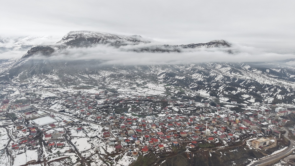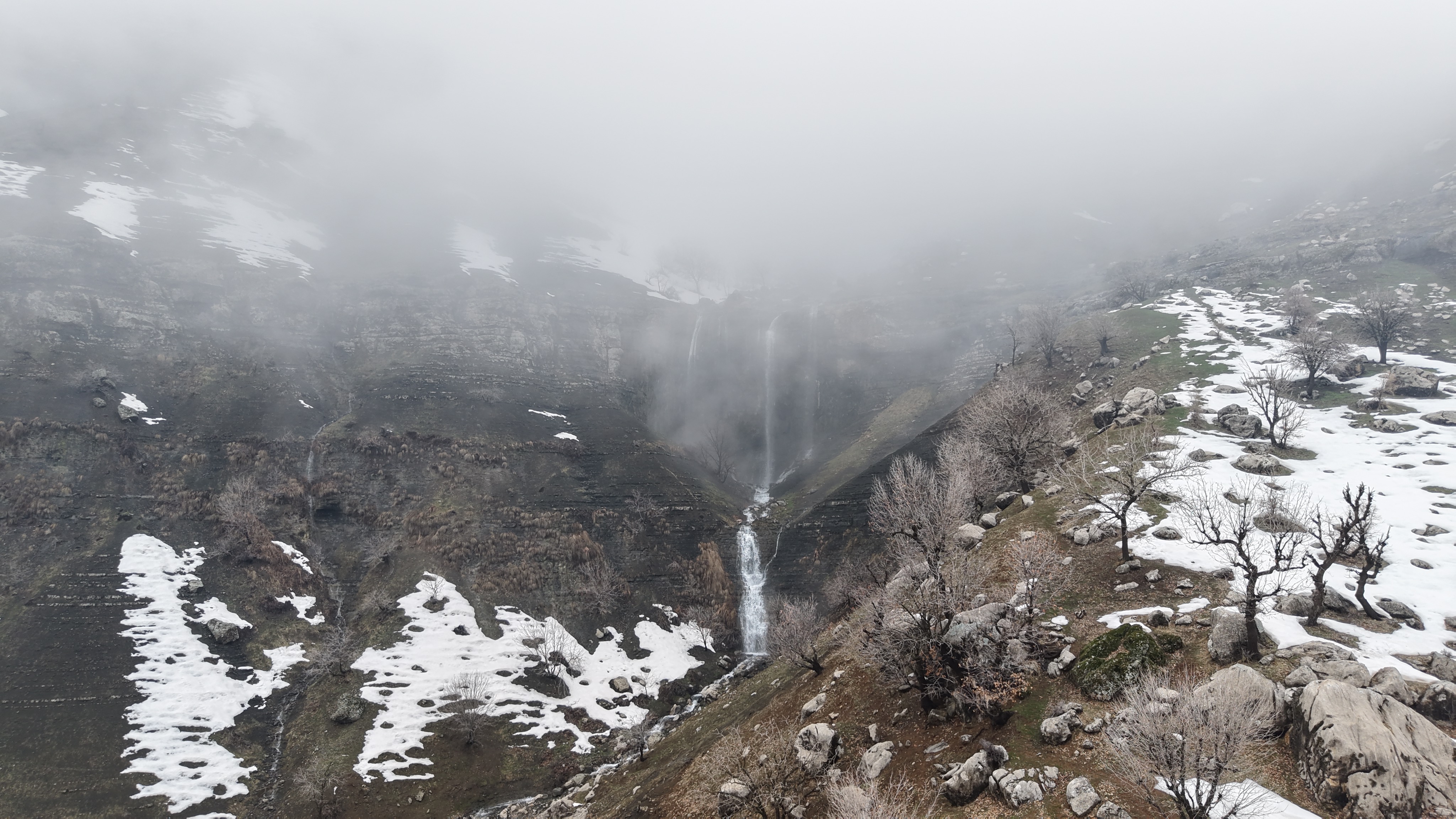İlçenin yüksek kesimlerinde oluşan sis tabakası ve şelaleler, dronla görüntülendi.