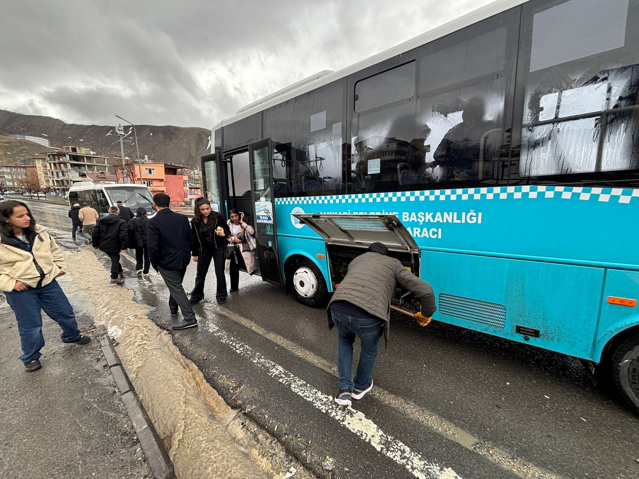 HAKKARİ- Olay, sabah saatlerinde Tekser servis hattında çalışan belediyeye ait bir araçta meydana geldi. Seyir halindeki araç, Halife Derviş Mahallesi’nde ilerlediği sırada sürücü, araçtan gelen olağandışı bir sesten şüphelenerek hemen aracı durdurdu.