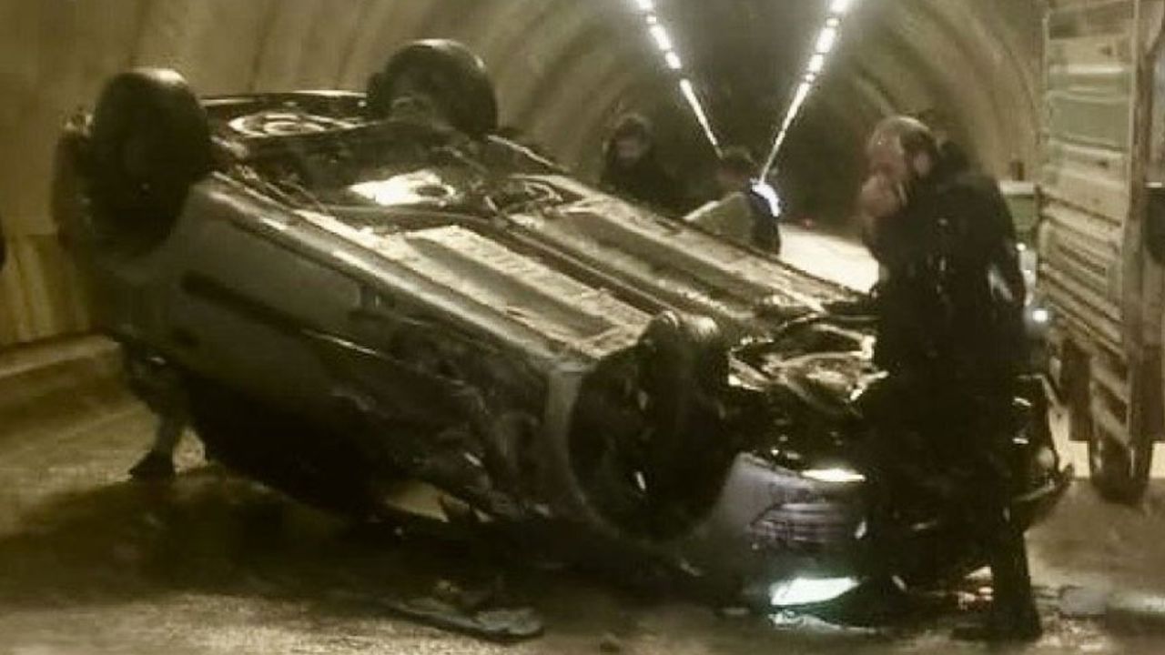 İlçede etkili olan kar yağışı nedeniyle kayganlaşan yolda kontrolden çıkan otomobil tünel girişinde takla attı. Kazada araçta bulunan 4 kişi yaralandı.