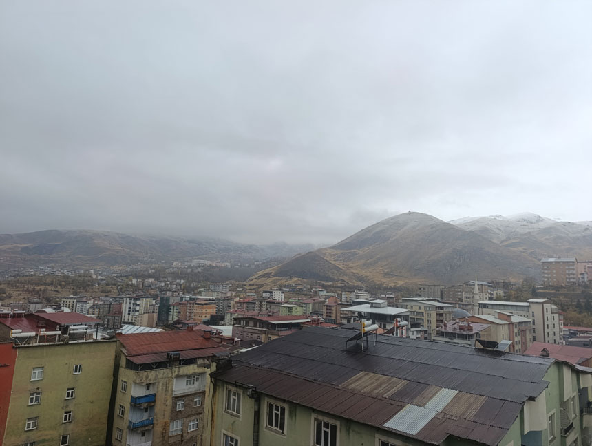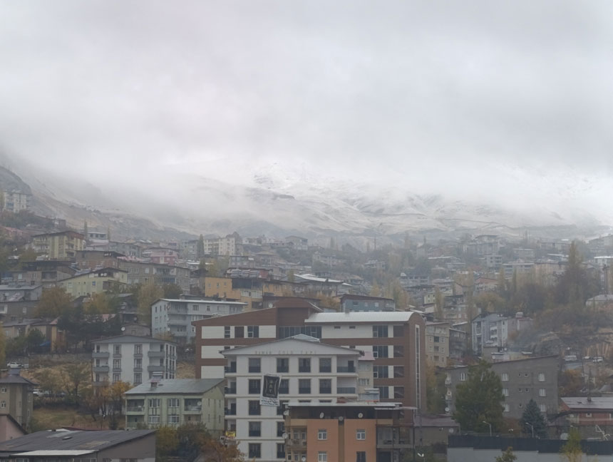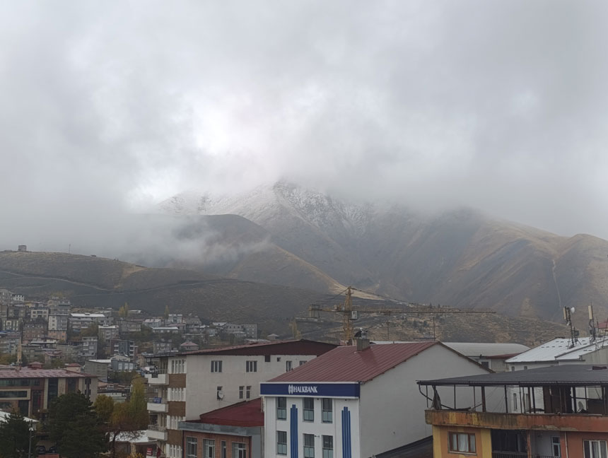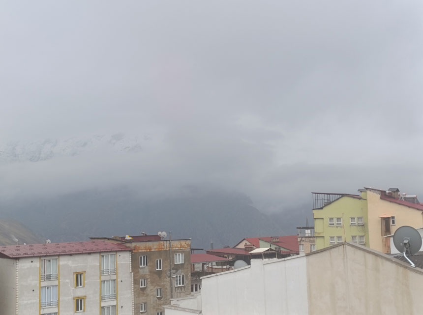 Caddelerde su birikintileri oluşurken, vatandaşlar sabah saatlerinde yağış altında işe gitmek zorunda kaldı. Kent merkezinin çevresini saran dağların beyaza bürünmesi, Hakkari’de kış sezonunun erken başladığını gösterdi.
